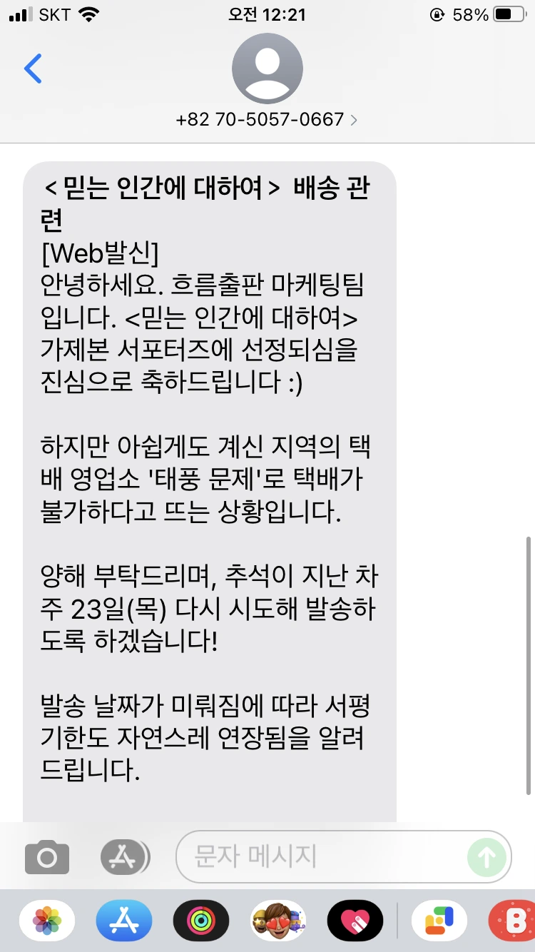 이럴 줄 알았다. 이놈의 태풍이 결국 나에게 다가오고 있던 많은 기쁨(=택배)을 막아서는구나. 사실 책이 문제는 아니다. 추석맞이로 주문해 놓은 선물들들도 줄줄이 육지를 벗어나지 못해 나는 애가타면서도 ‘그래, 태풍이 큰 피해없이 잘 지나가기만 해도 다행이지.’ 했다가 금방 ‘아오..’ 울컥하고만다.