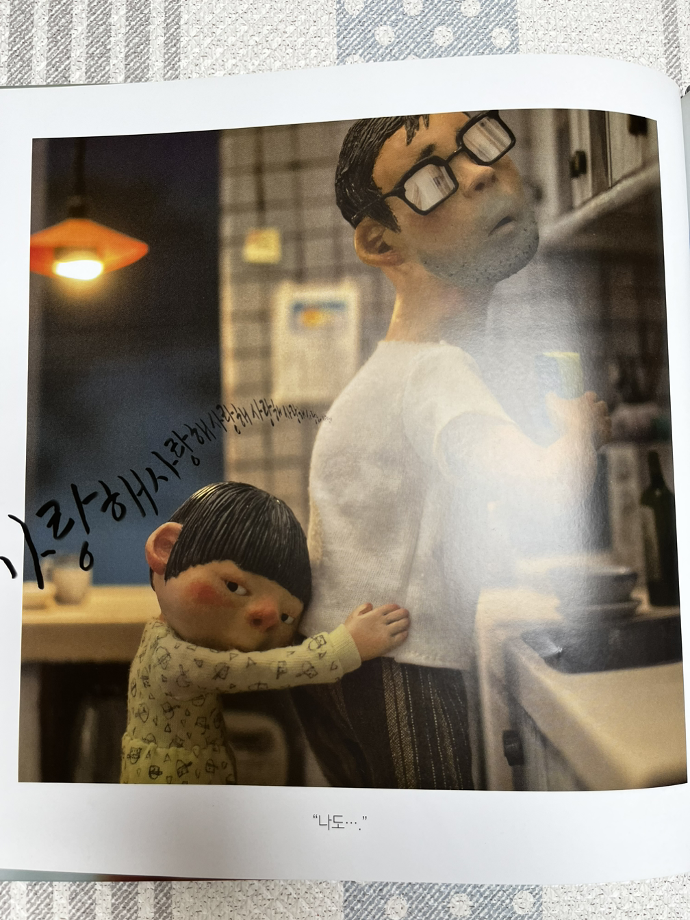 국민 그림책 작가 백희나 님의 <알사탕> 내용이다. 아이와 함께 100번은 족히 읽었을 거다. 특히, ‘사랑해 사랑해 사랑해 사랑해 사랑해’ 동동이를 향해 마음속으로 수없이 사랑한다고 읊조리는 아빠를 동동이가 뒤에서 안아주는 장면을 아이는 가장 좋아한다.