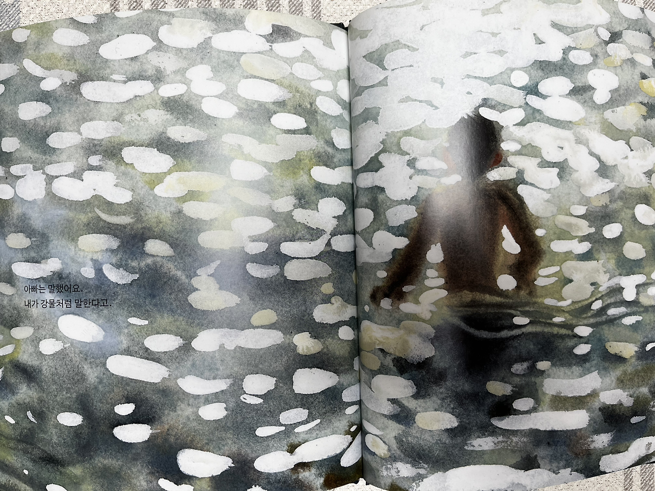 ...아침마다 낱말들의 소리를 들으며 깨어나지만 그 어떤 것도 말할 수 없는 내가 있다. 나는 돌멩이처럼 조용하다. 소리 없이 아침밥을 먹고 말없이 학교 갈 준비를 하며 학교에서는 맨 뒷자리에 앉는다. 아이들은 내가 자기들처럼 말하지 않는 것에만 귀를 기울인다. 한 사람씩 가장 좋아하는 곳에 대해 이야기하는 시간에 내 차례가 되었지만 입이 아예 꼼짝도 하지 않았다. 아빠가 학교에 나를 데리러 왔다가 강가로 갔다. 강가를 걷다가 아빠가 말한다. “강물이 어떻게 흘러가는지 보이지? 너도 저 강물처럼 말한단다.” 물거품이 일고, 소용돌이치고, 굽이치다가 부딪히는 강물처럼 나는 그렇게 말한다...