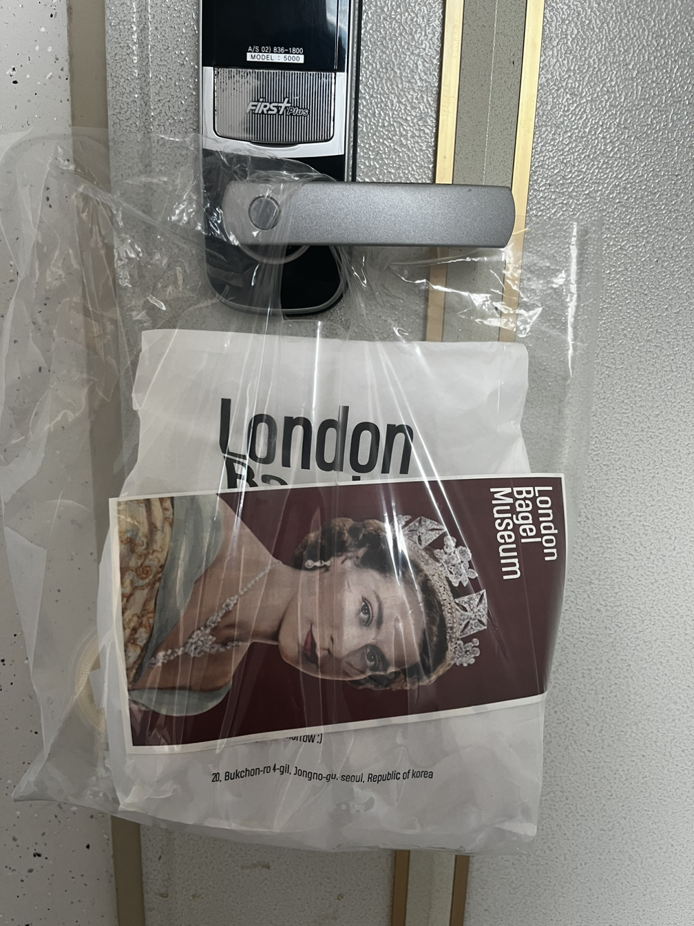 좋은 거, 멋진 풍경, 맛있는 음식이 눈앞에 있을 때 떠오르는 사람은 대개 자신에게 유의미한 사람이다. 누군가에게 의미 있는 존재가 된다는 건 조심스럽지만 기쁜 일이다. 더구나 문고리에 베이글을 걸어주고 가는 마음이라나. 베이글보다 그 순간에 나를 떠올려주고, 집 앞까지 다녀가는 수고스러움을 감내하는 그 애정어린 마음이 고마운 거다.