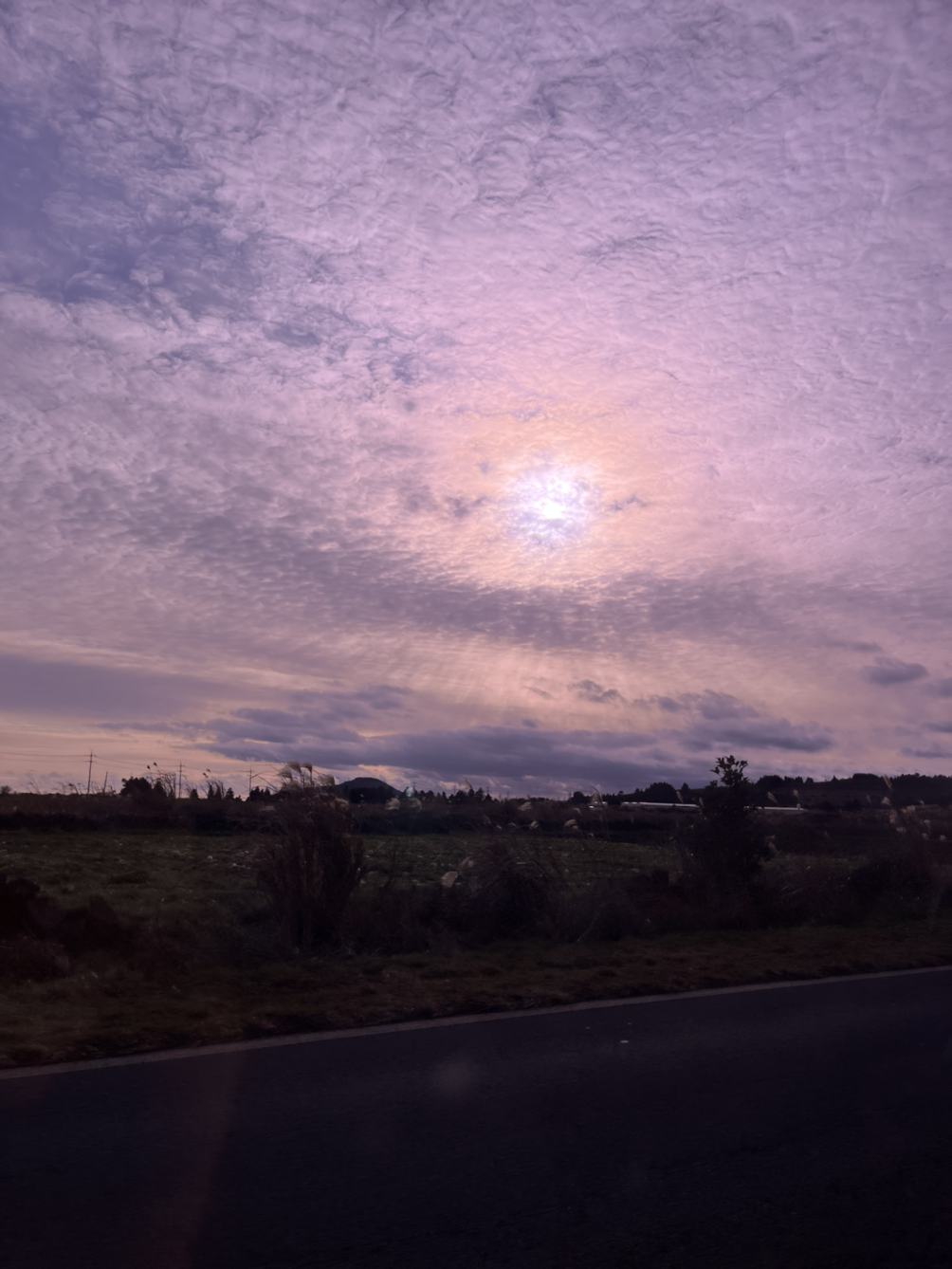 오후에 아버님, 어머님은 시동생과 밭에 가시고 우리 세 식구는 다시 우리만의 집으로 돌아왔다.(지난 번에 귤밭에 갔다가 허리를 삐끗했던 남편은 지금도 고생 중이라 이번에는 밭에 가지 못했다.) 아침에 서둘러 내려가느라 빵 한조각도 사들고 가지 못했는데 오는 길에는 소고기며, 손수 만드신 돈까스며 양손이 무겁다. 친정엄마나 시어머니나 엄마의 마음이란 늘 더 주지 못해 안달이시다. 공기는 차갑지만 햇살은 따뜻한 제주만의 겨울 정취에 빠져 집으로 돌아오는 길에 구름에 살짝 가린 햇살이 신비로운 운치를 자아냈다. 여유롭고 따뜻한 오후 햇살에 조금 나른해지기도 했다. 남편은 운전을 하고 아이는 카시트에서 잠이 들었고 나는 커피를 마시며 완벽하게 아름다운 제주의 오후에 녹아들었다. 새 해 첫날이 조용하고 평화롭게 마무리되는 중이었다.