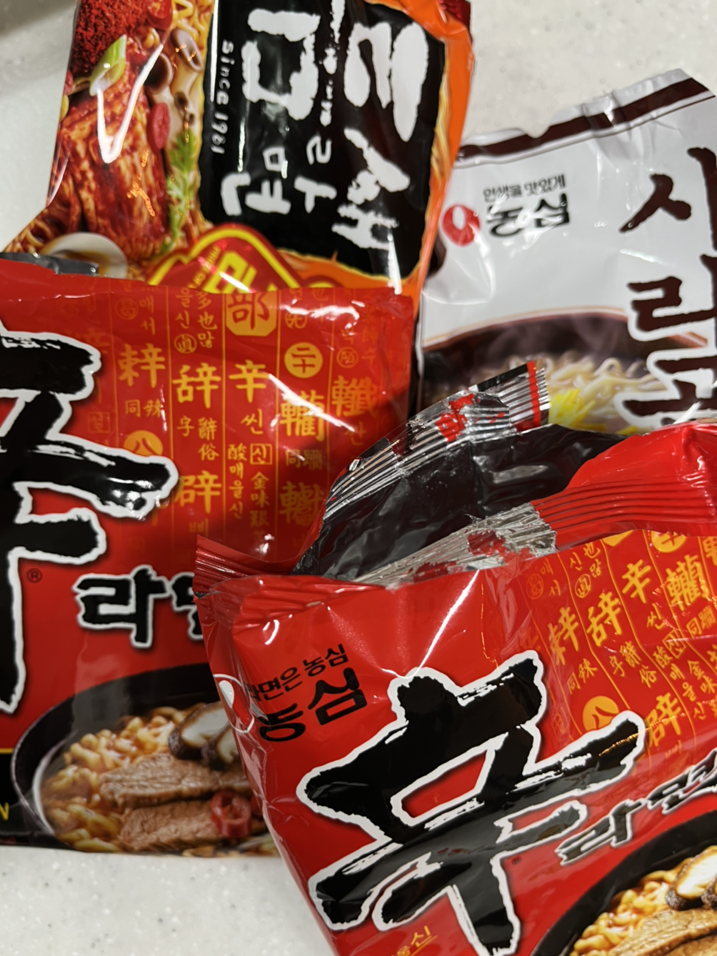 명절을 시댁에서 지내는 이틀 동안 뱃속을 기름진 음식으로 꽉꽉 채우다 보면 자연스럽게 떠오르는 음식이 바로 라면이다. 명절을 다 지내고 우리 집으로 돌아오면 누가 먼저랄 것도 없이 가스레인지에 물을 담은 냄비를 올린다. 라면을 끓이기 위함이다. 느끼함과 더부룩함을 잡아줄 우리 부부만의 특급 레시피는 바로 신라면2개+틈새라면 김치맛 1개에 대파를 듬뿍과 청양고추 1-2개를 썰어 넣는 것이다.(우리만 라면을 먹을 수는 없으니 아이는 맵지 않은 사리곰탕이다.)
