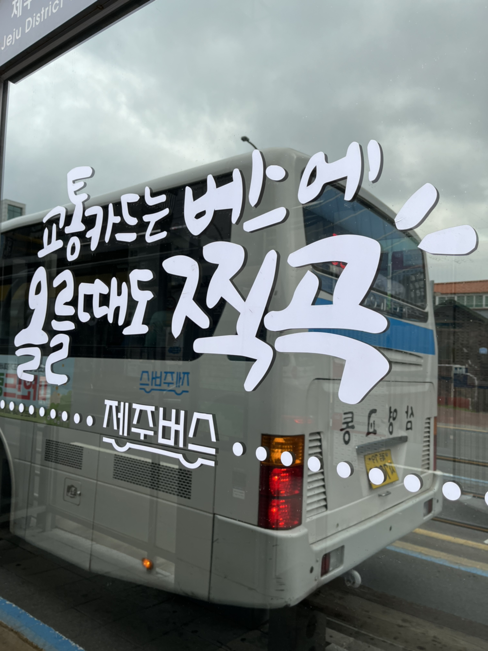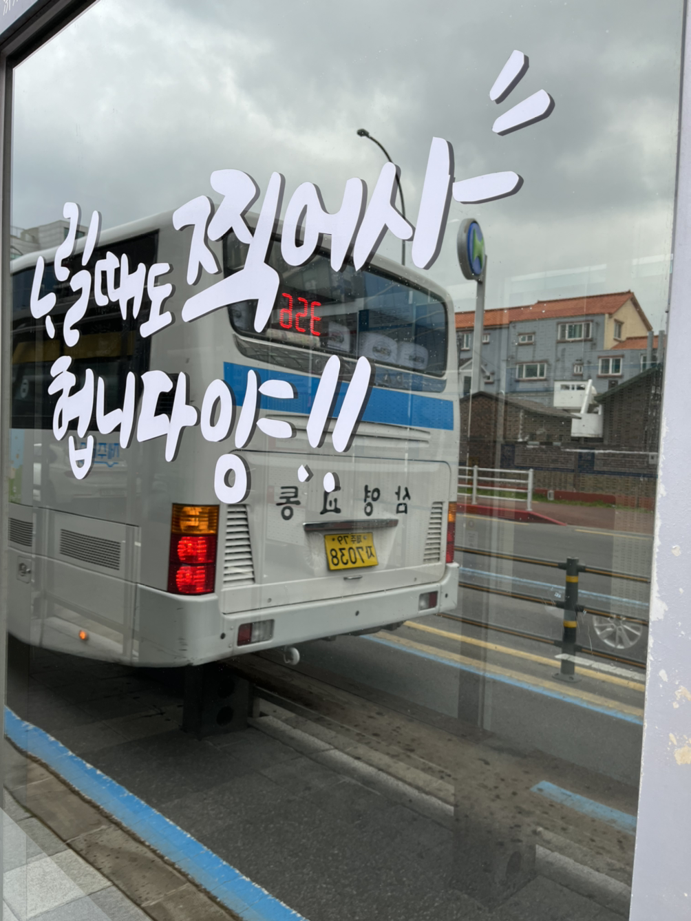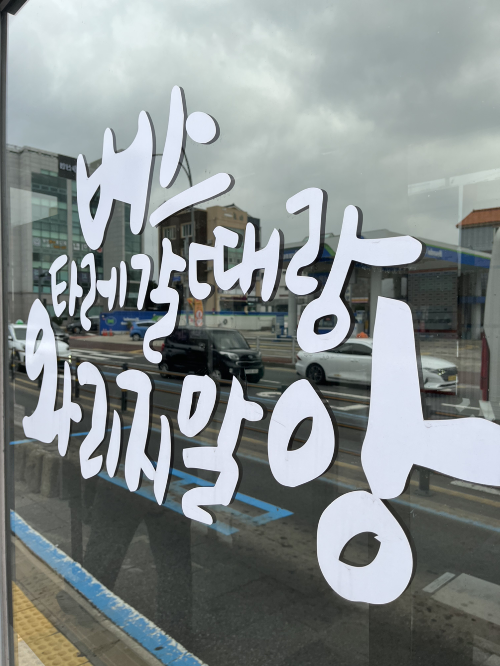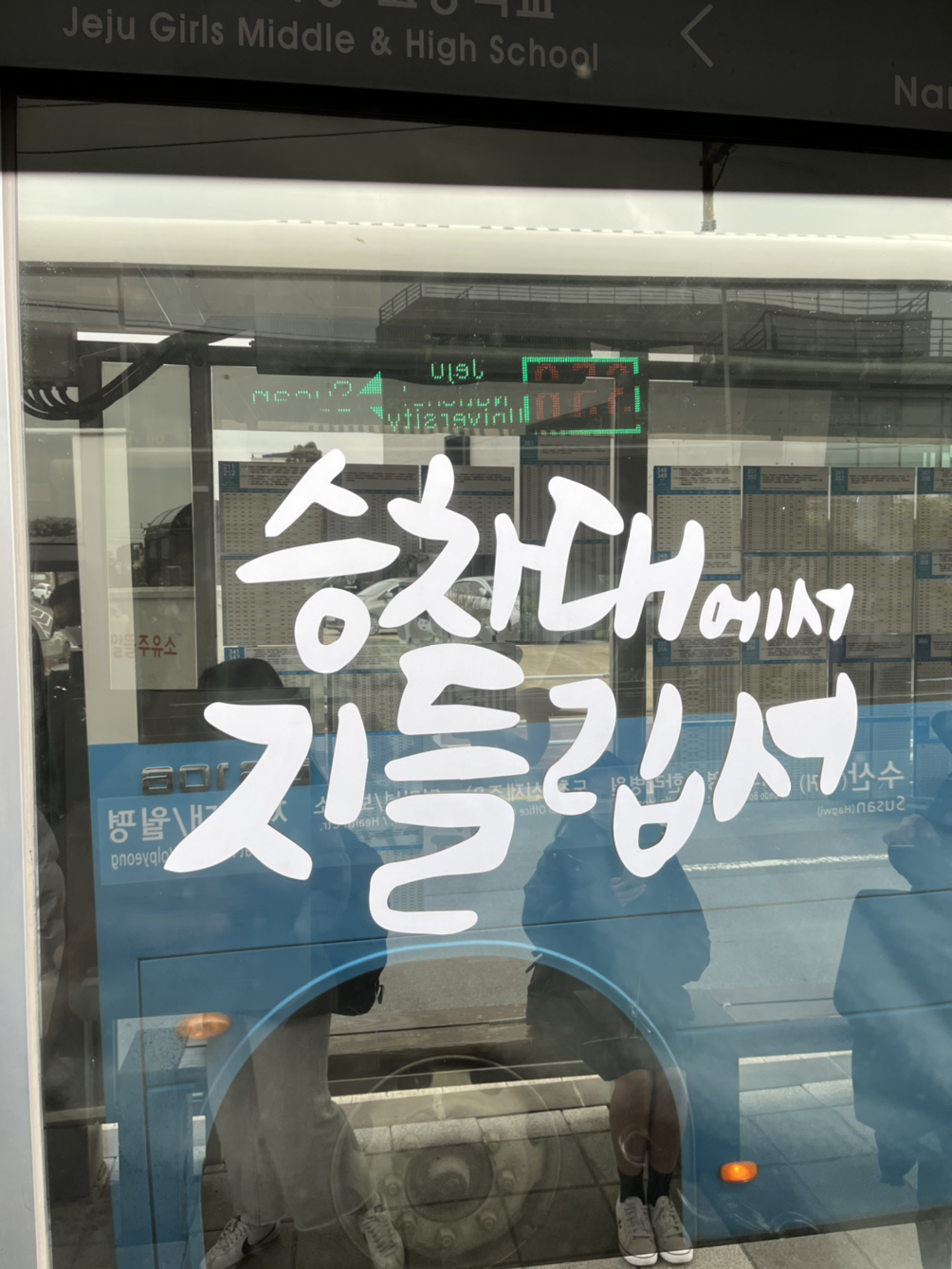 글씨체마저 귀여운 제주어가 정겨웠다. 그런데 이 정류장에만 쓰여있는 것이 아니라는 것을 다음 정류장에서 곧 알게 되었다.