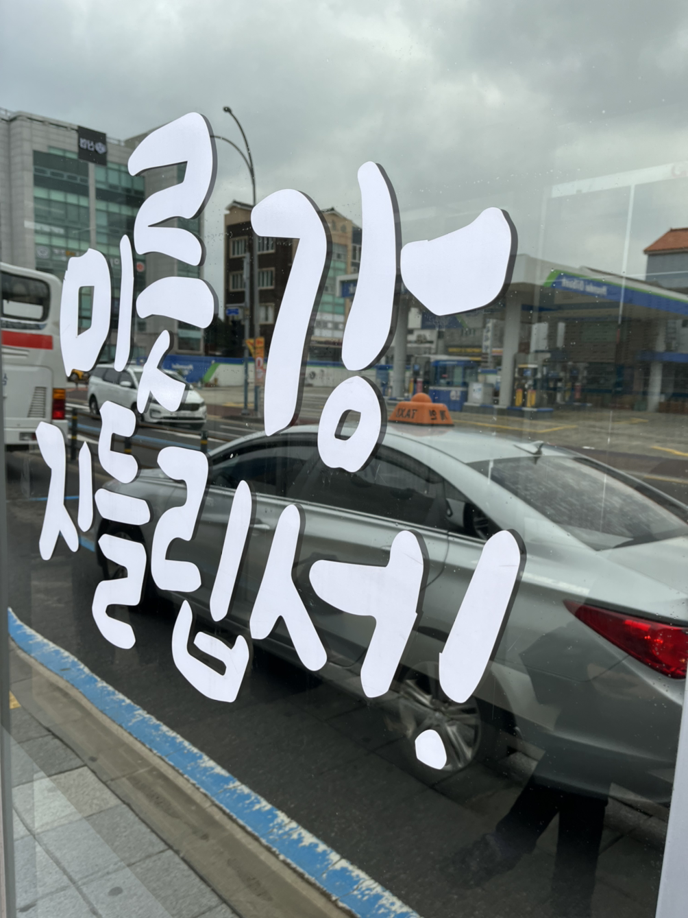 버스를 타고 가다 정차하는 정류장에서 제주어로 쓰인 글귀가 적힌 것을 발견했다.