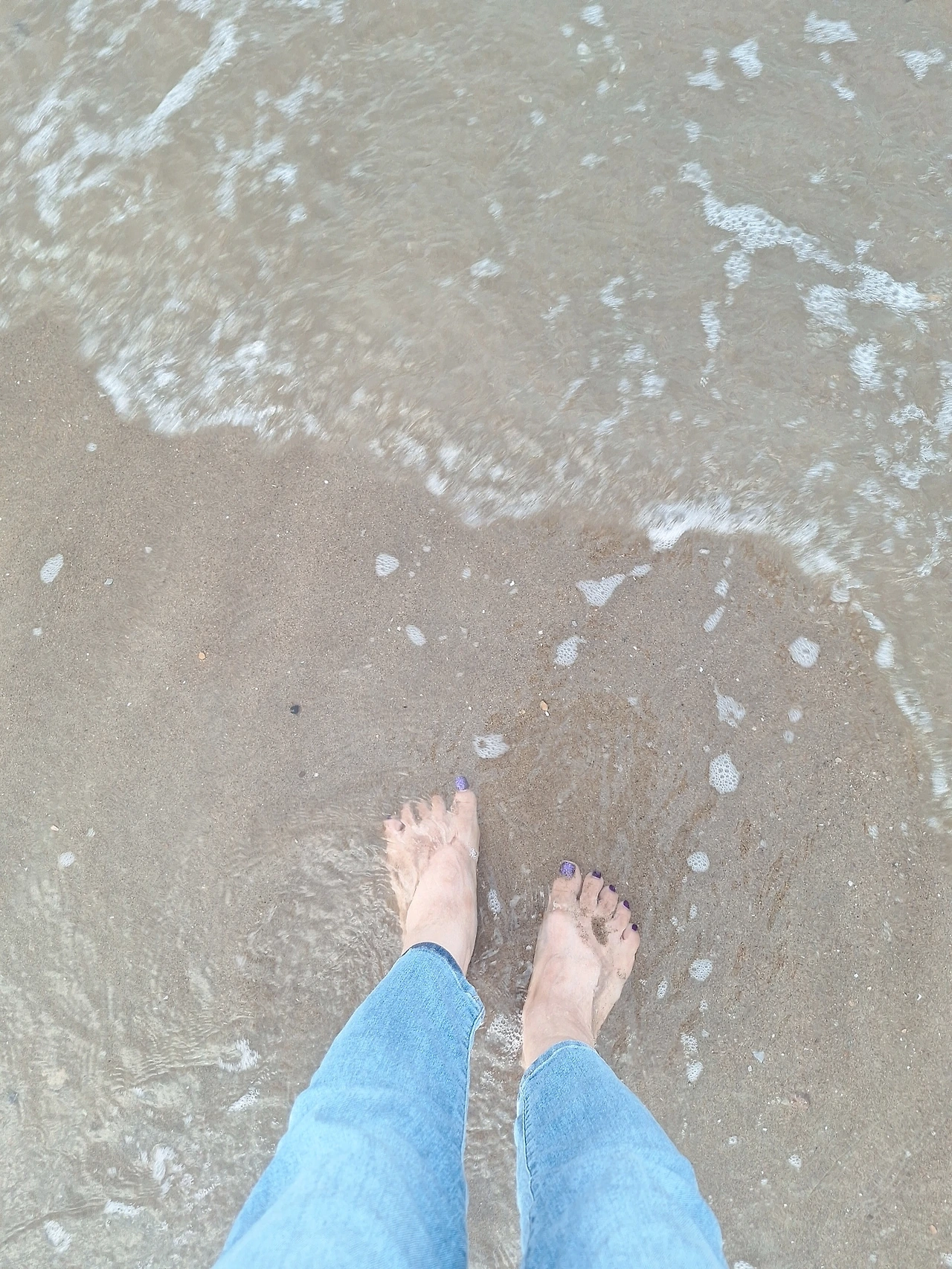 작은파도가 내 발을 흠뻑 젖히고 나니 시원했다.