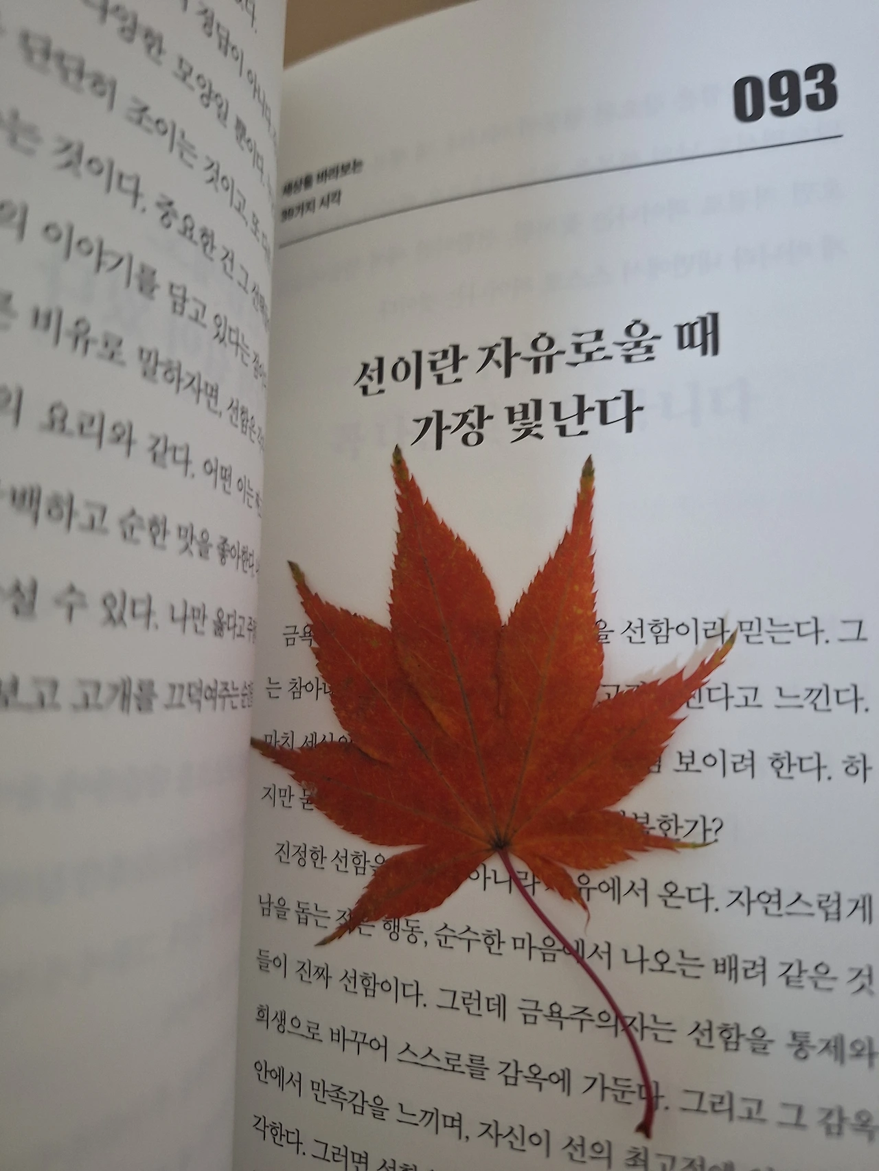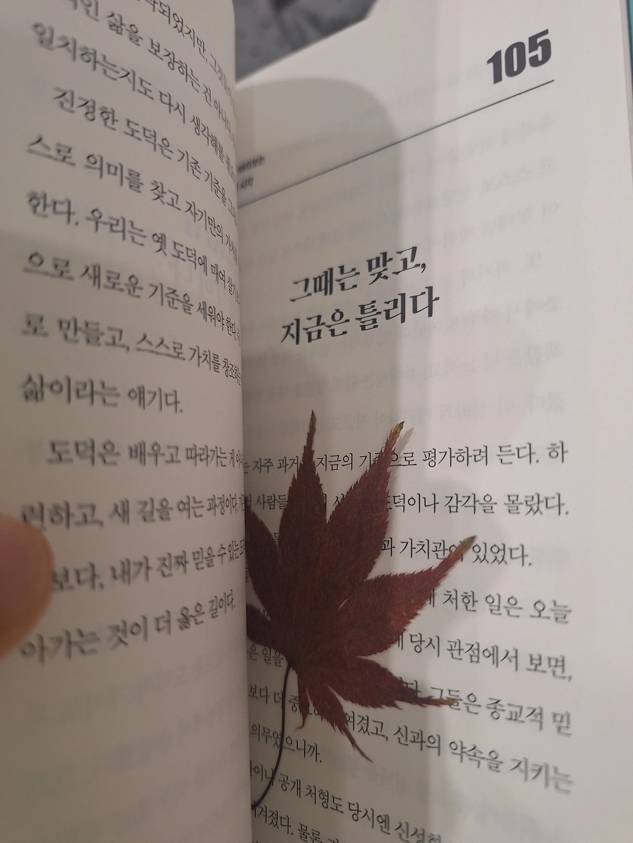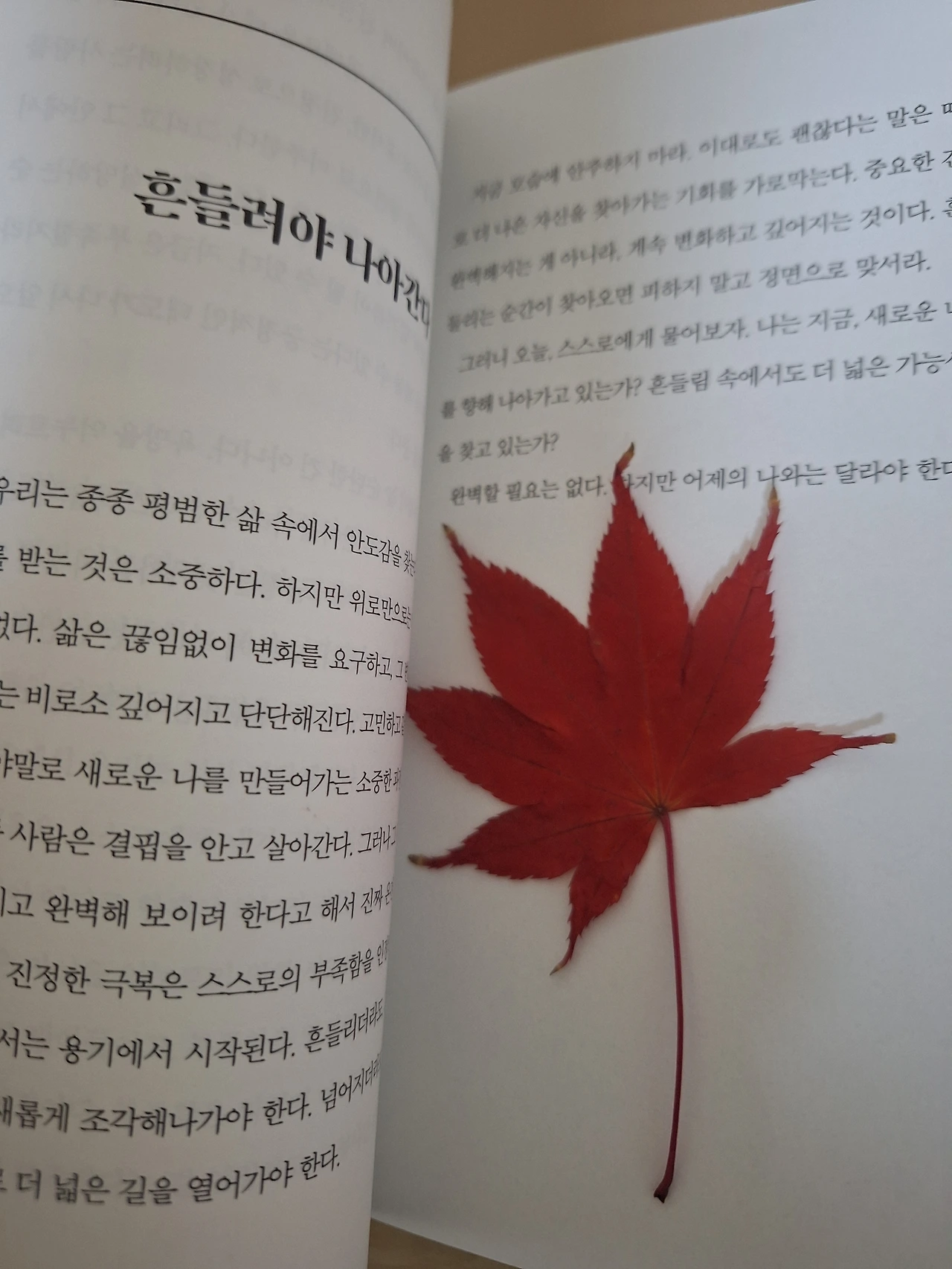 책 속에 빨간 단풍잎도 나를 따라왔다.