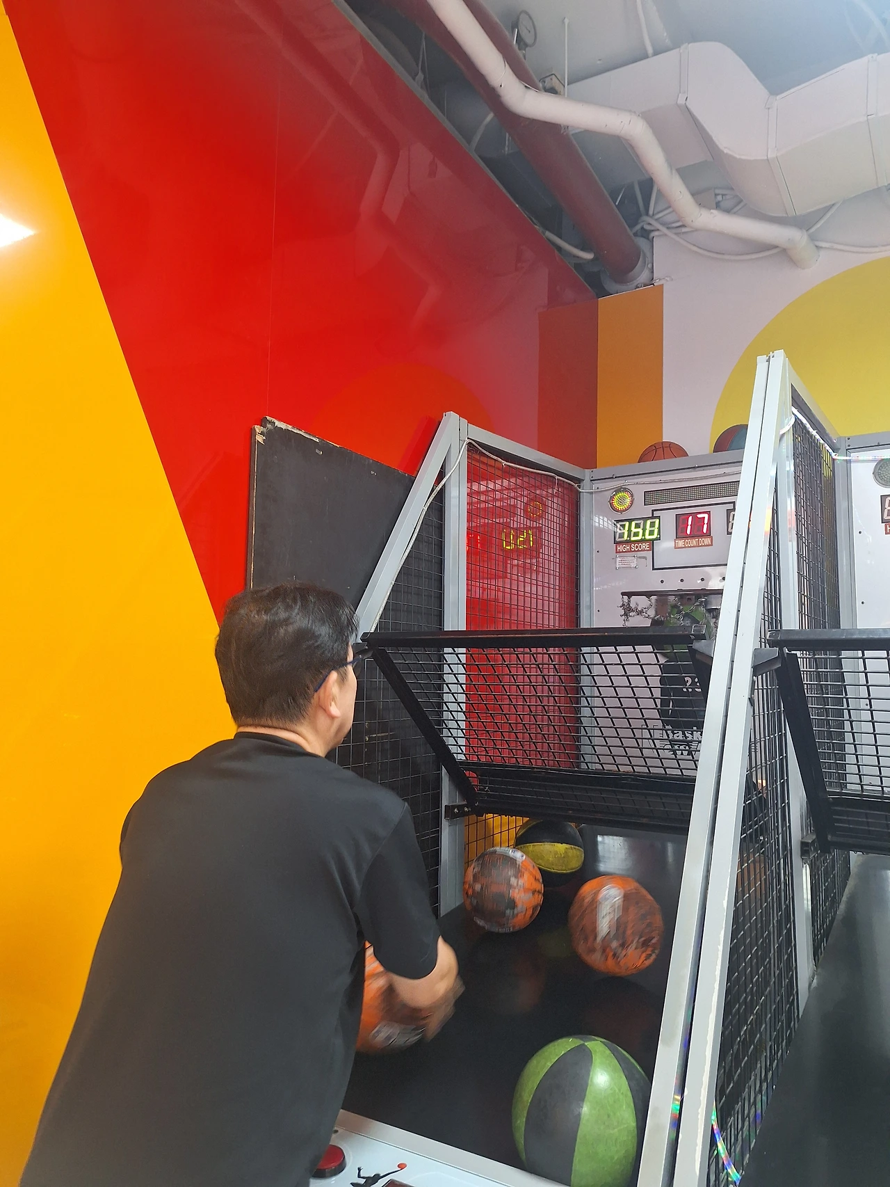 농구공 넣기 게임에 도전합니다.