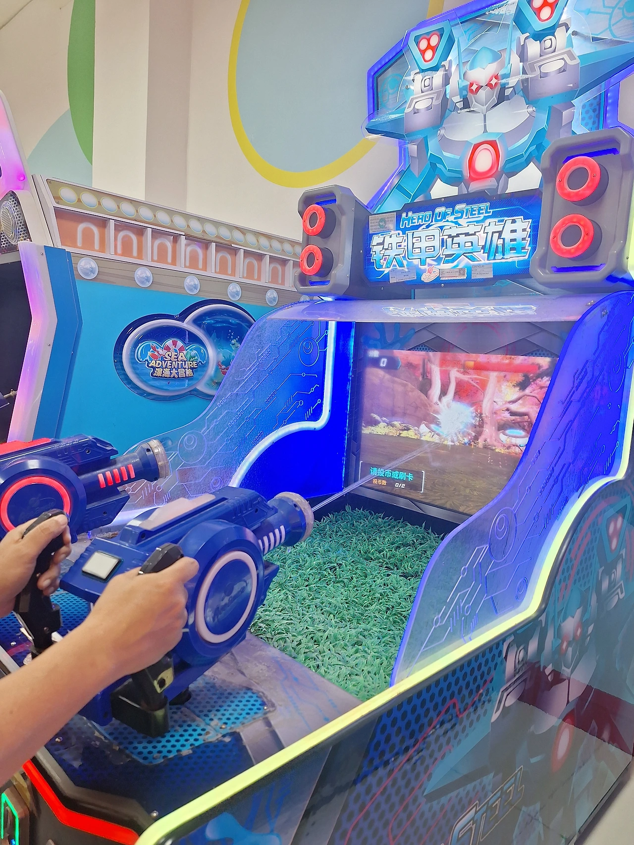 물총 게임을 즐기는 중입니다.