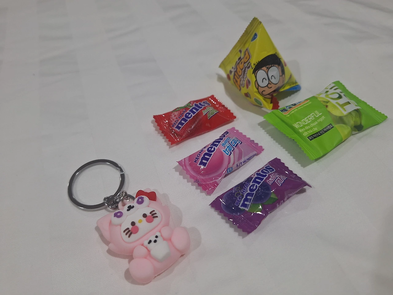 남은 건 사탕 3개, 젤리 한 개, 열쇠고리 1개