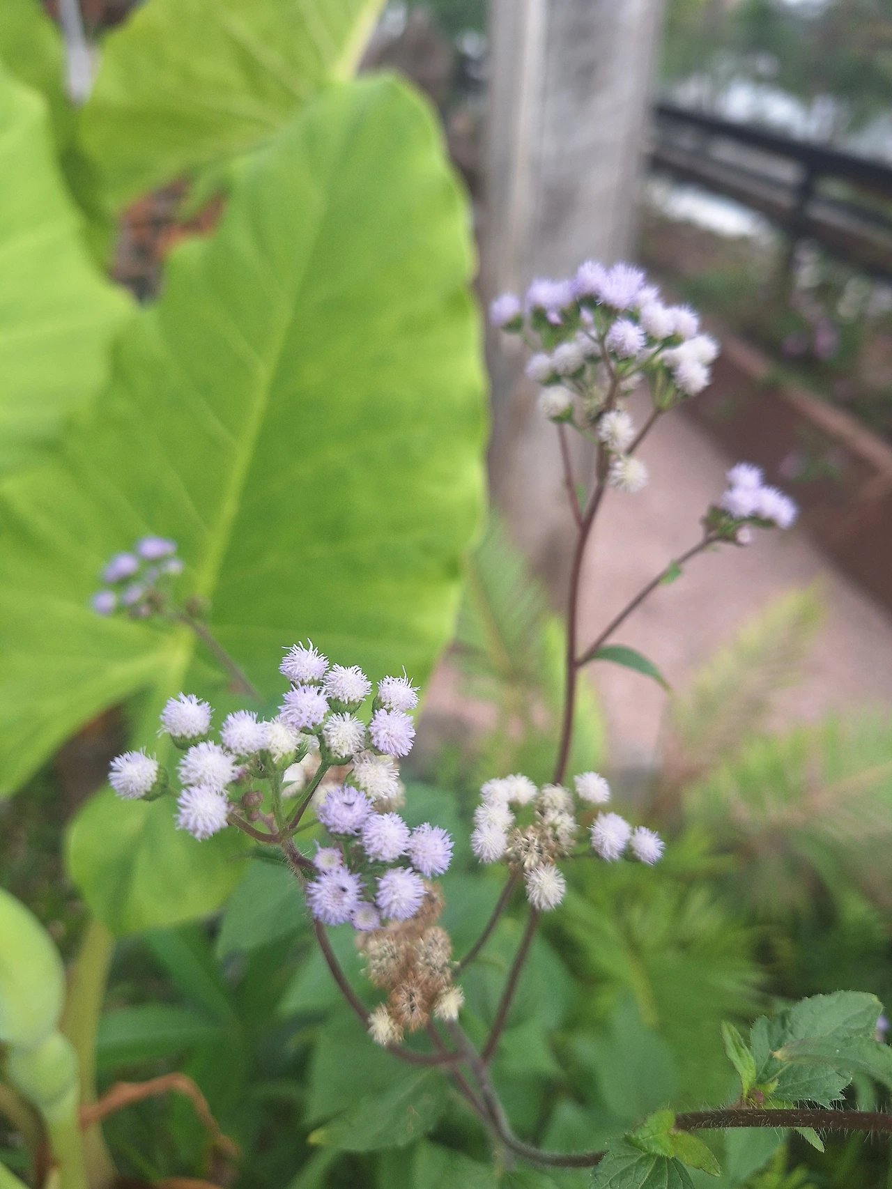 연보랏빛 풀꽃 위에 흰나비가 날아다닌다