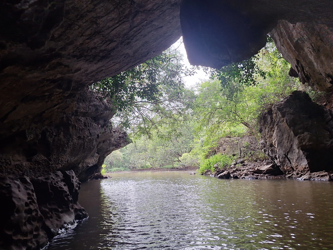 보트 타고 동굴탐험