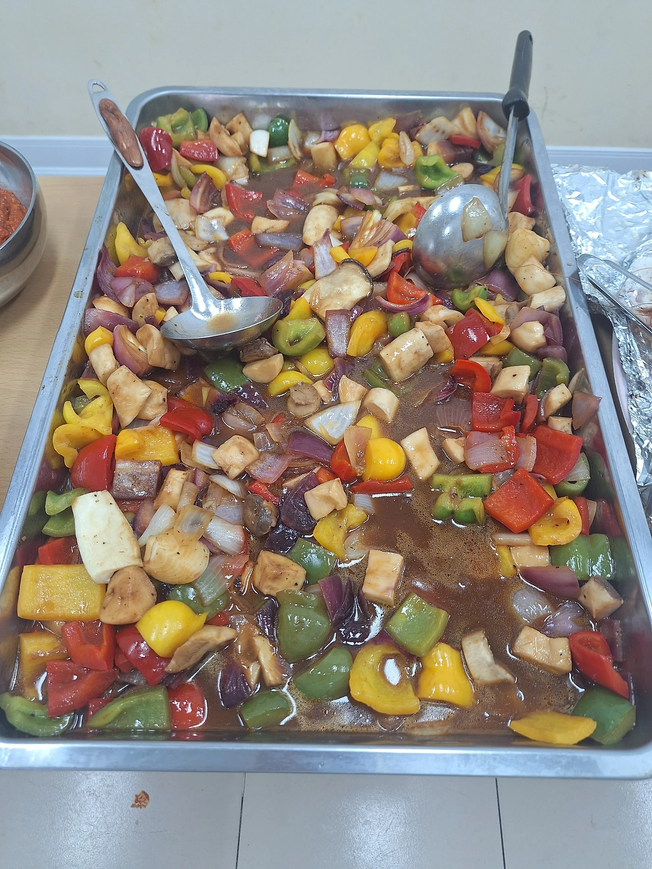 빨강, 노랑, 초록 파프리카와 버섯 적양파가