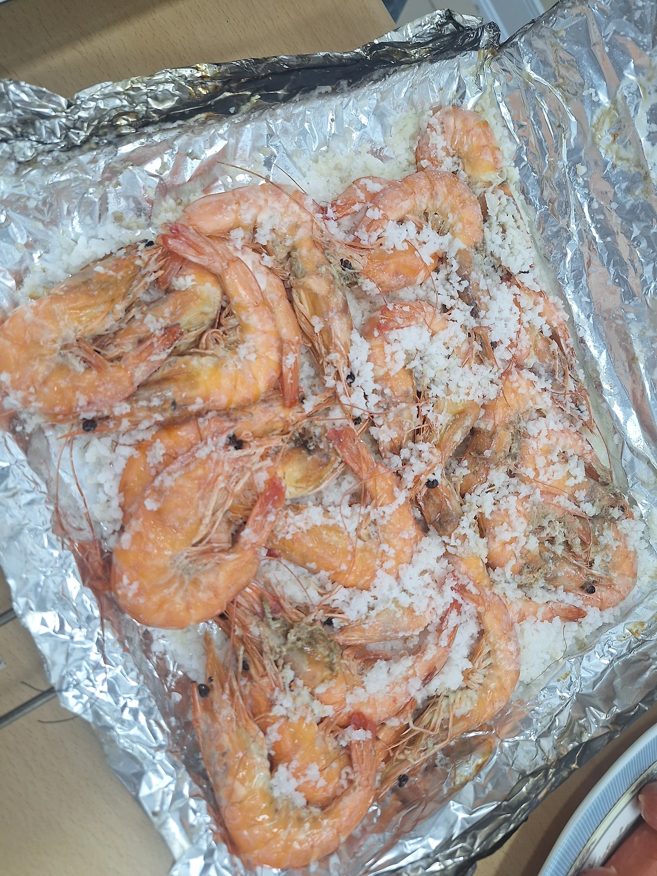 그 옆 새우도 하얗게 소금을 뒤집어쓰고