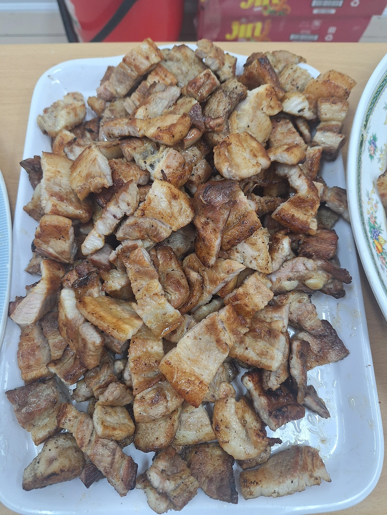 노릇노릇 맛있게 구워 접시에 한가득 담아왔다.