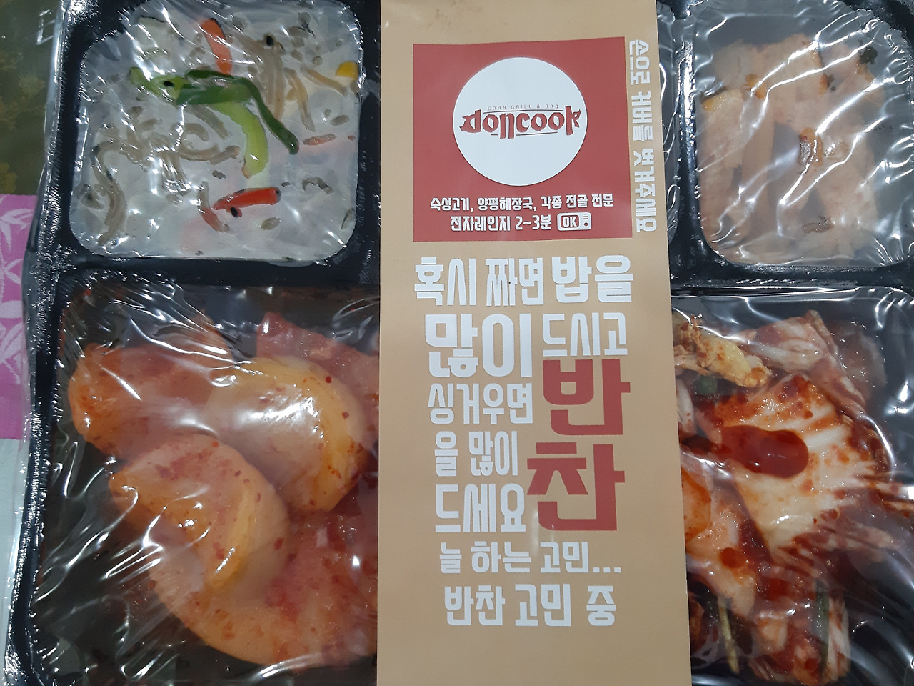 오늘의 음식은 심쿵(심장이 쿵쿵의 준말)이다. 일단 맛을 보기 전 내 마음을 사로잡은 문구로 후한 점수를 주었다. 김치도 국물 맛도 밥도 반찬(잡채 , 총각무, 배추김치, 어묵볶음, 버섯 피망 야채볶음)도 짜지 않고 오 홀 ~~ 기대 이상의 맛이다. 홍보대사는 절대 아니다. 다만 작은 글귀에 반해서 영업전략에 큰 점수를 주었을 뿐이다.