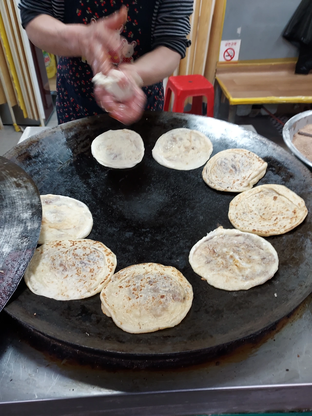 한 동안 많이 아프셔서 1년 이상 문을 닫았다가 몸이 회복되어 문을 열고 또다시 호떡을 구워 내고 있다.