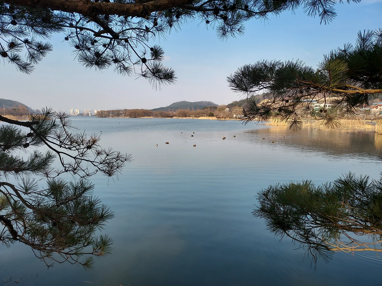 15분쯤 걸리는 호숫가로 간다.(신정호) 호수 뷰를 보며 둘이서 차 안에서 한 끼를 해결한다.