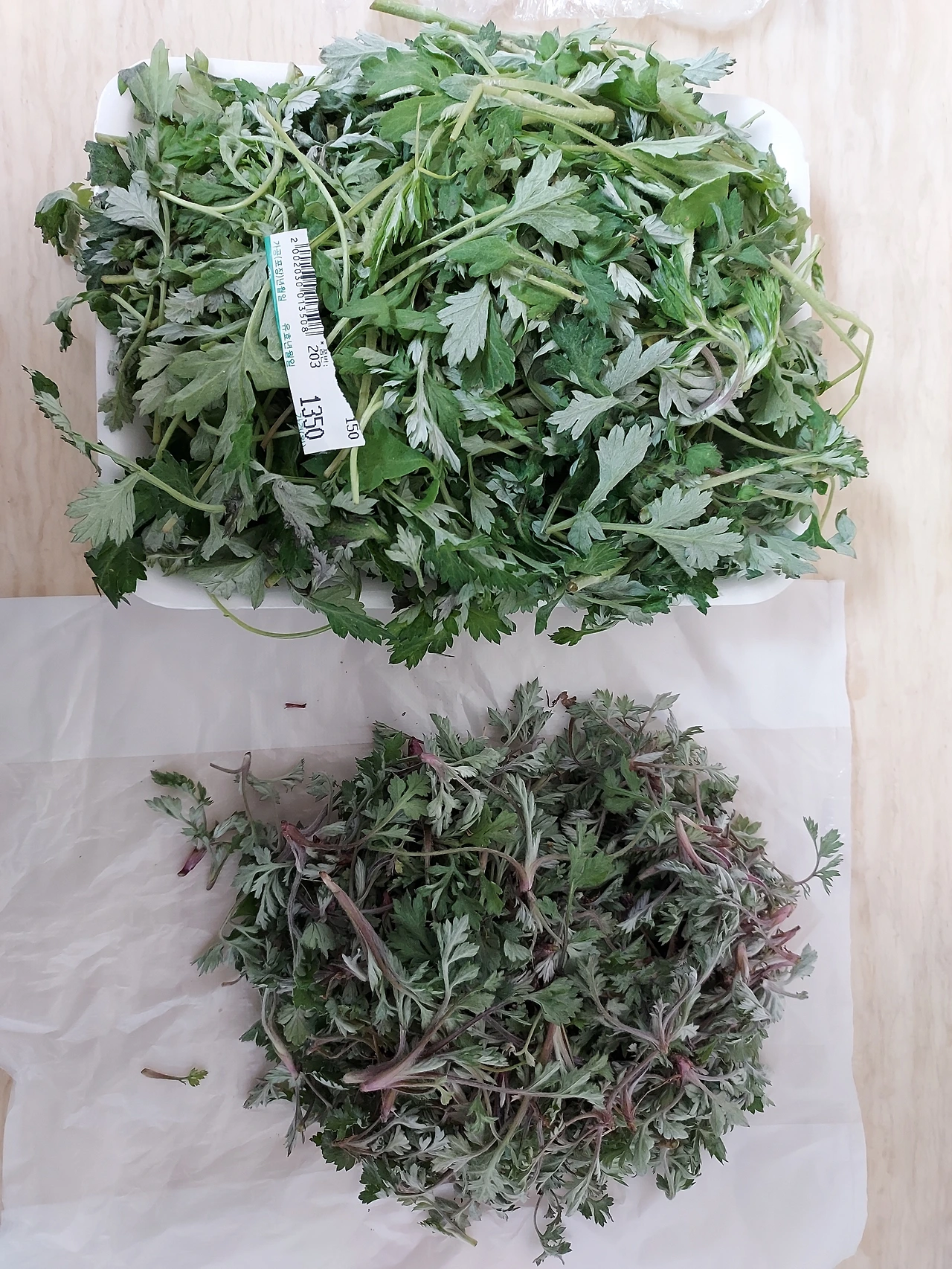 위(마트 쑥)아래(노지 쑥)