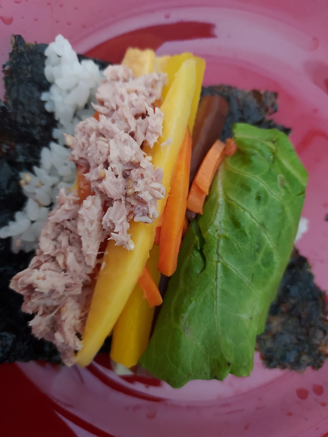 난 김밥 속에 망고(쏘 아이)를 넣는다.
