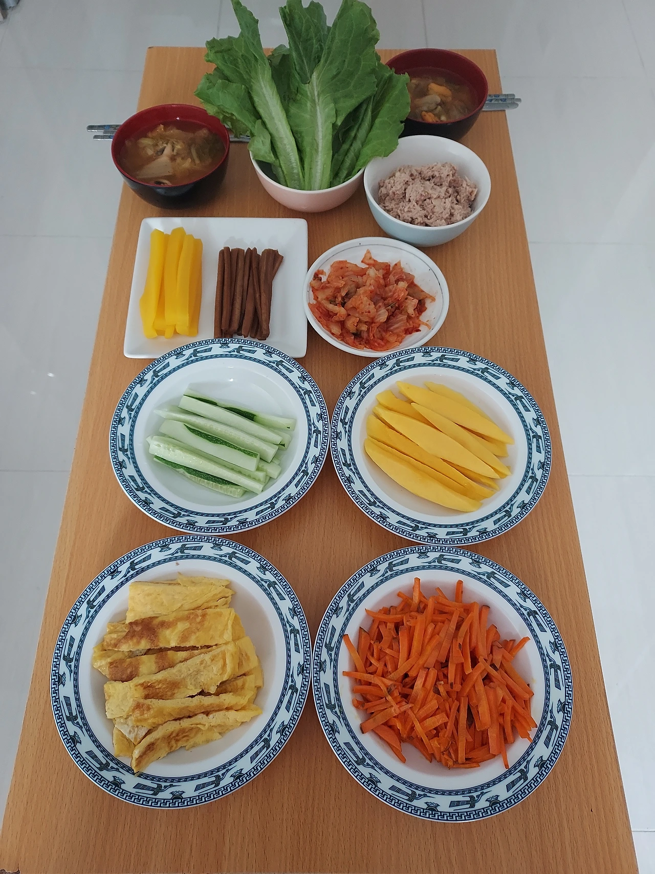 쌈밥을 먹기로 하고 아침 겸 점심을 준비했다.