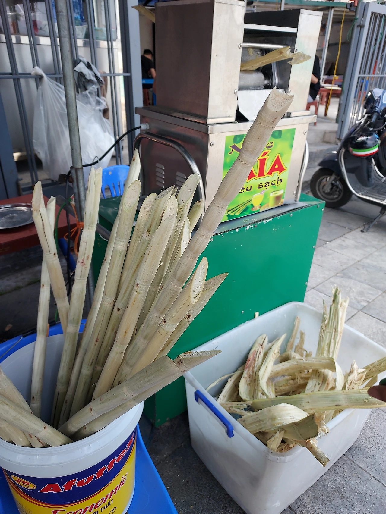 사탕수수를 통째로 즉석 착즙기로 짜서