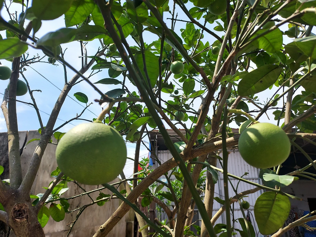 공장 안 뜰에 자몽나무가 탐스럽게 열려있다.