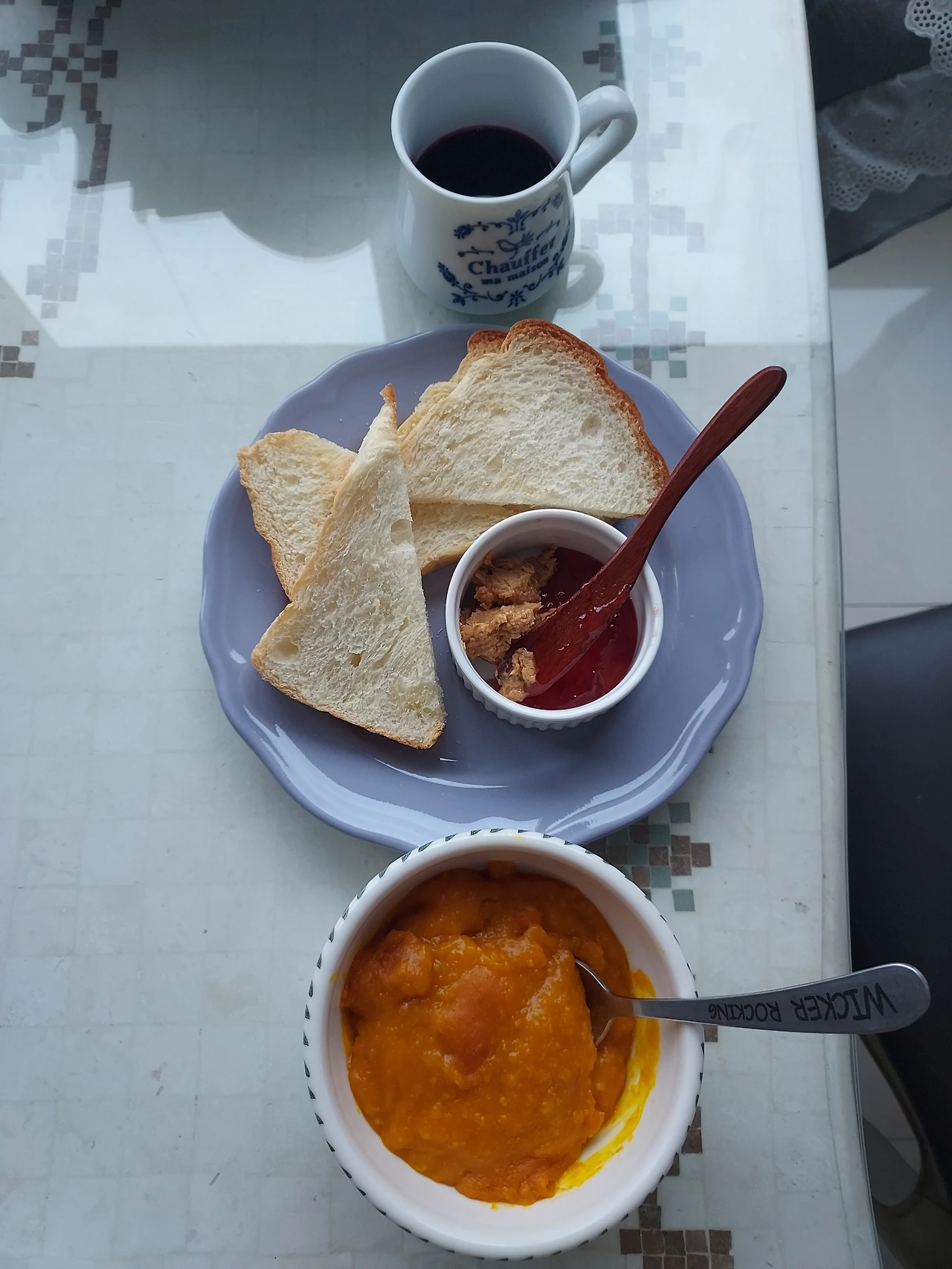 그녀가 조금만 더 이야기를 나누자며 내 옷깃을 붙잡지 않았다면 난 짐 정리를 하러 빨리 집으로 돌아 갔을터 하늘이 펑크라도 났는지... 우리에게 하룻밤 잊지못할 추억을 선물해 주었다. 다음날 도망치듯 나오려는데... 따끈한 호박죽 한 그릇과 토스트 그리고 사과 비트 차를 식탁에 차려두었다.