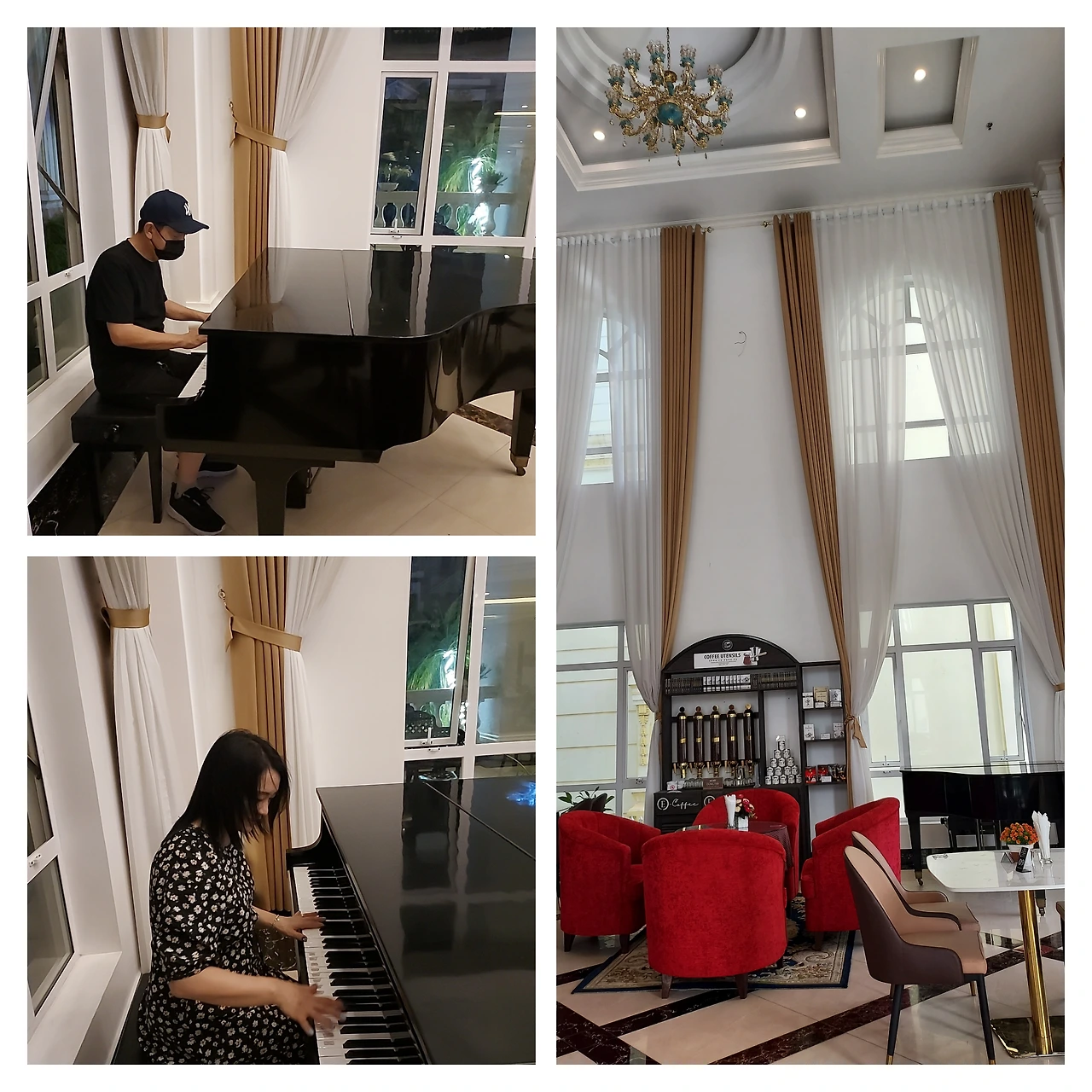 우리는 사진만 찍자며 피아노 근처로 갔다.