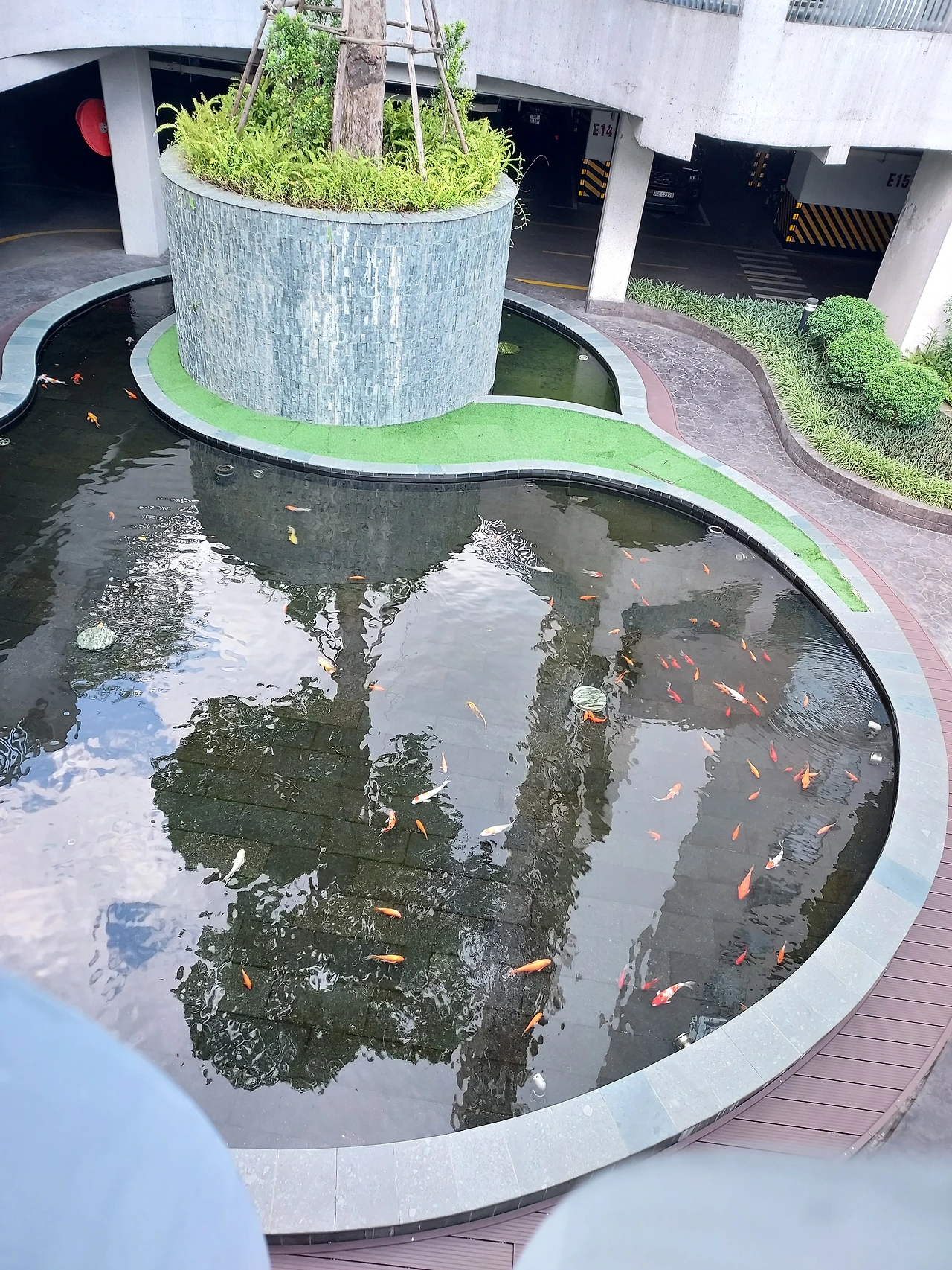 잉어들이 살고 있는 연못을 슬쩍