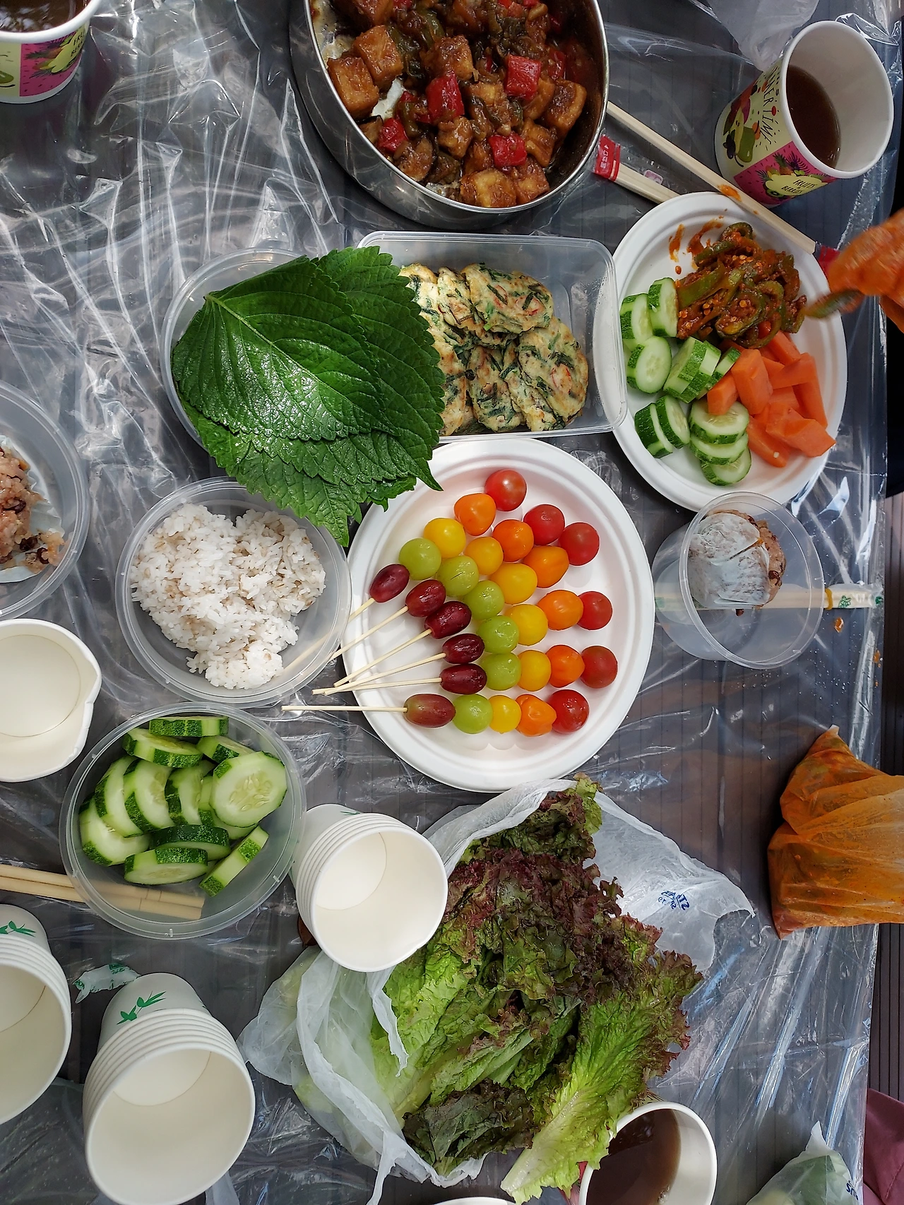 이것저것 도시락과 음식을 낑낑 들고