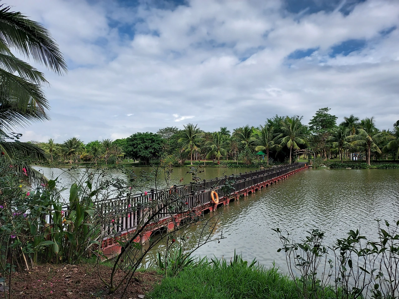 호수를 끼고 있는 공원 앞