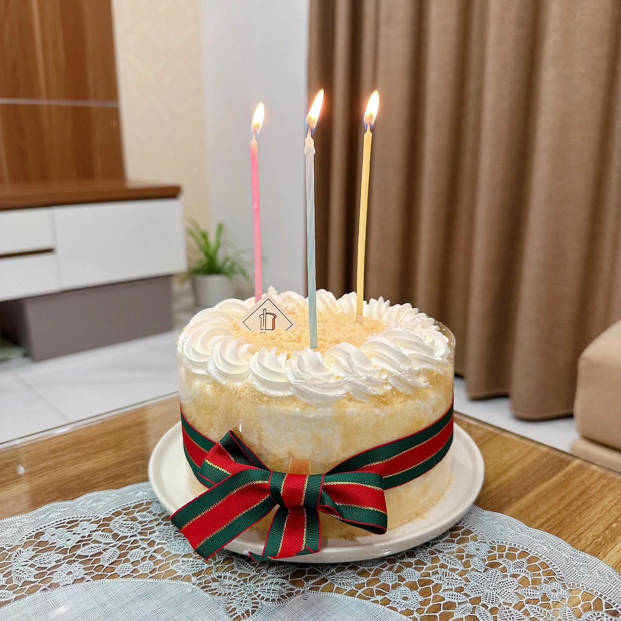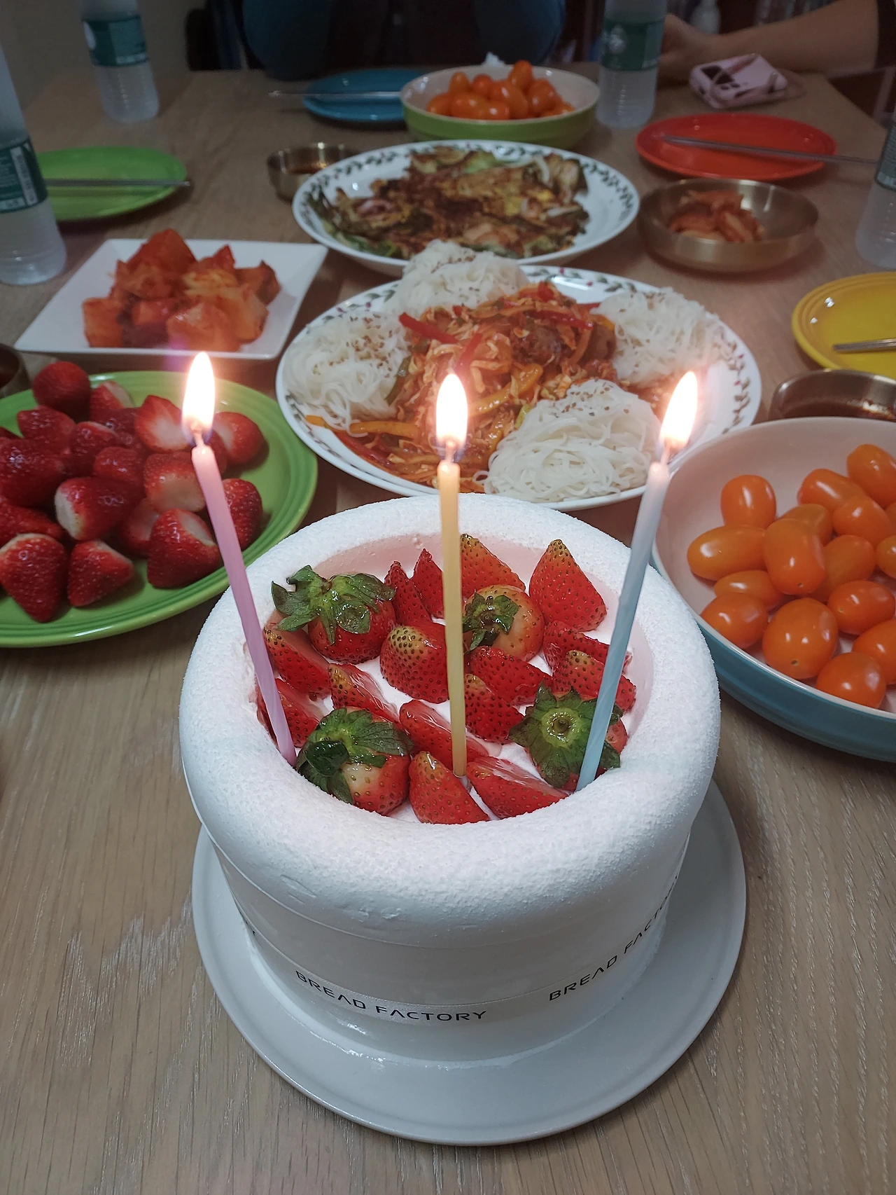 케이크에 초를 세 개만 꼽기로 했다.