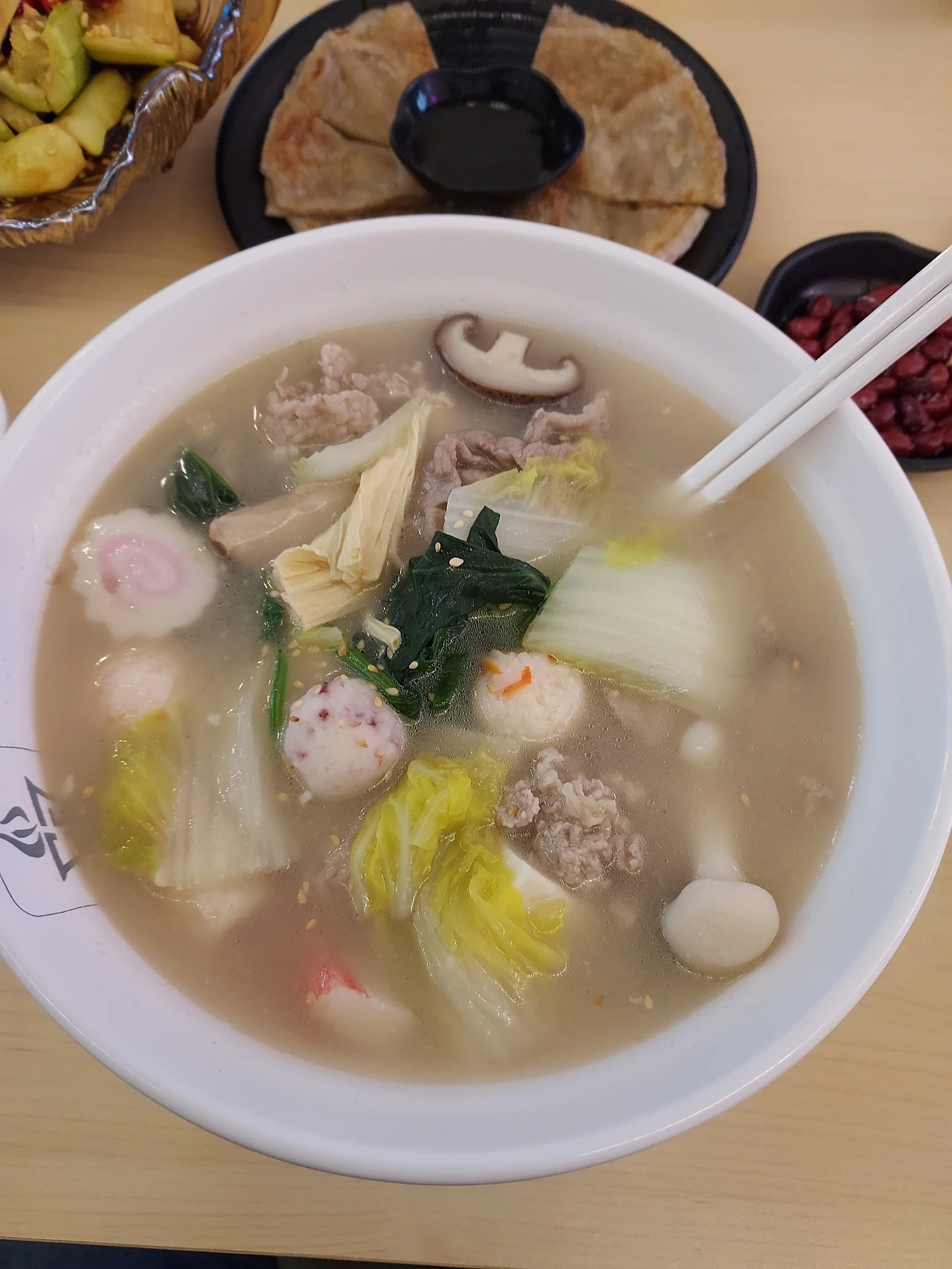 노란 속배추 담고 야채랑 면 어묵 버섯등
