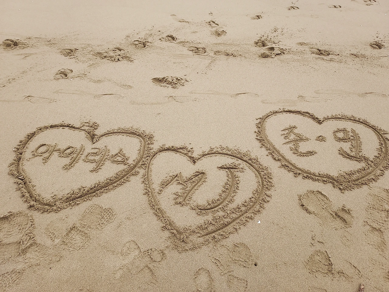 바다야 내가 왔노라 모래사장에 글씨 쓰기