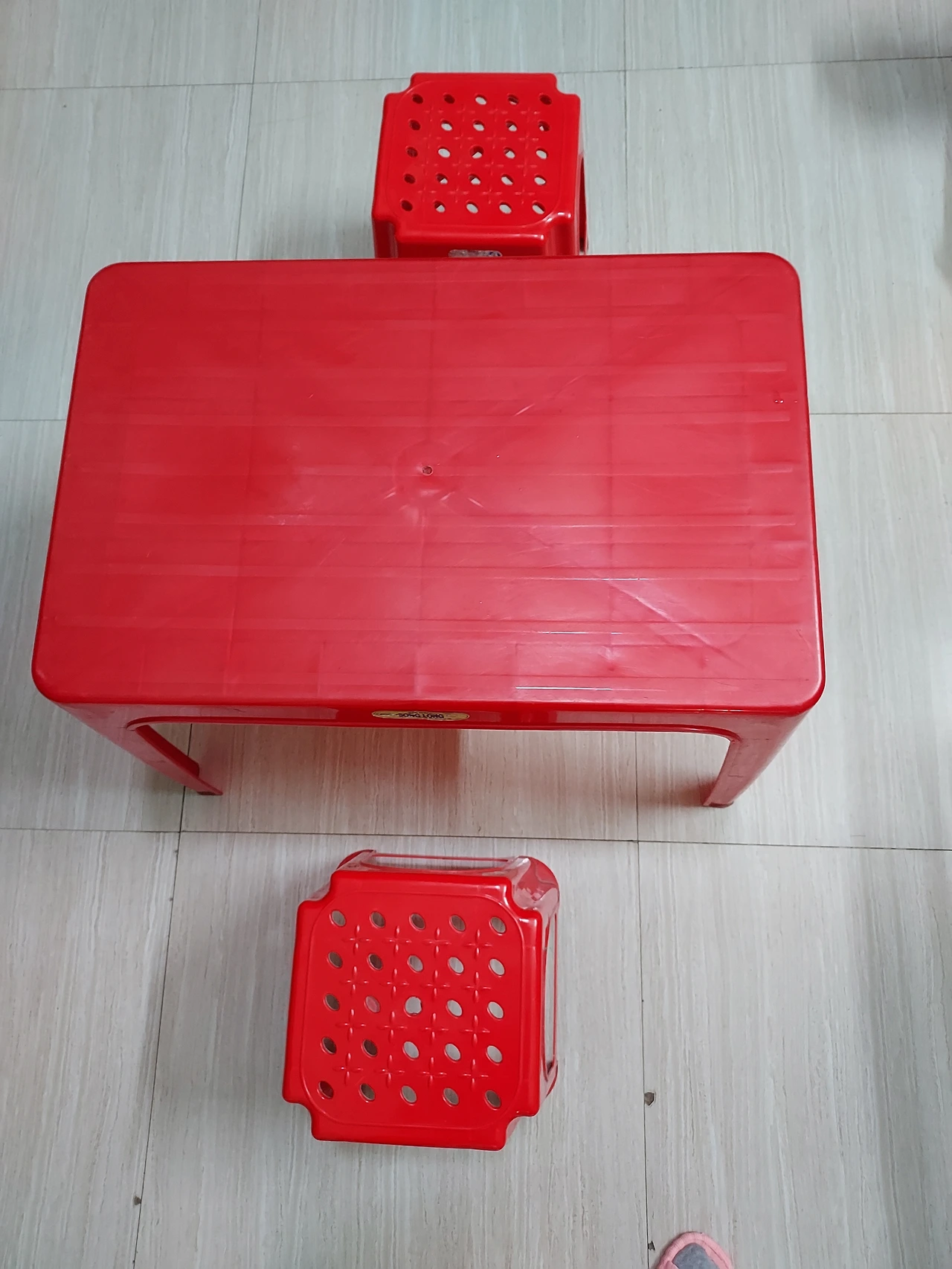 동그랗거나 네모모양 플라스틱 의자도 하나