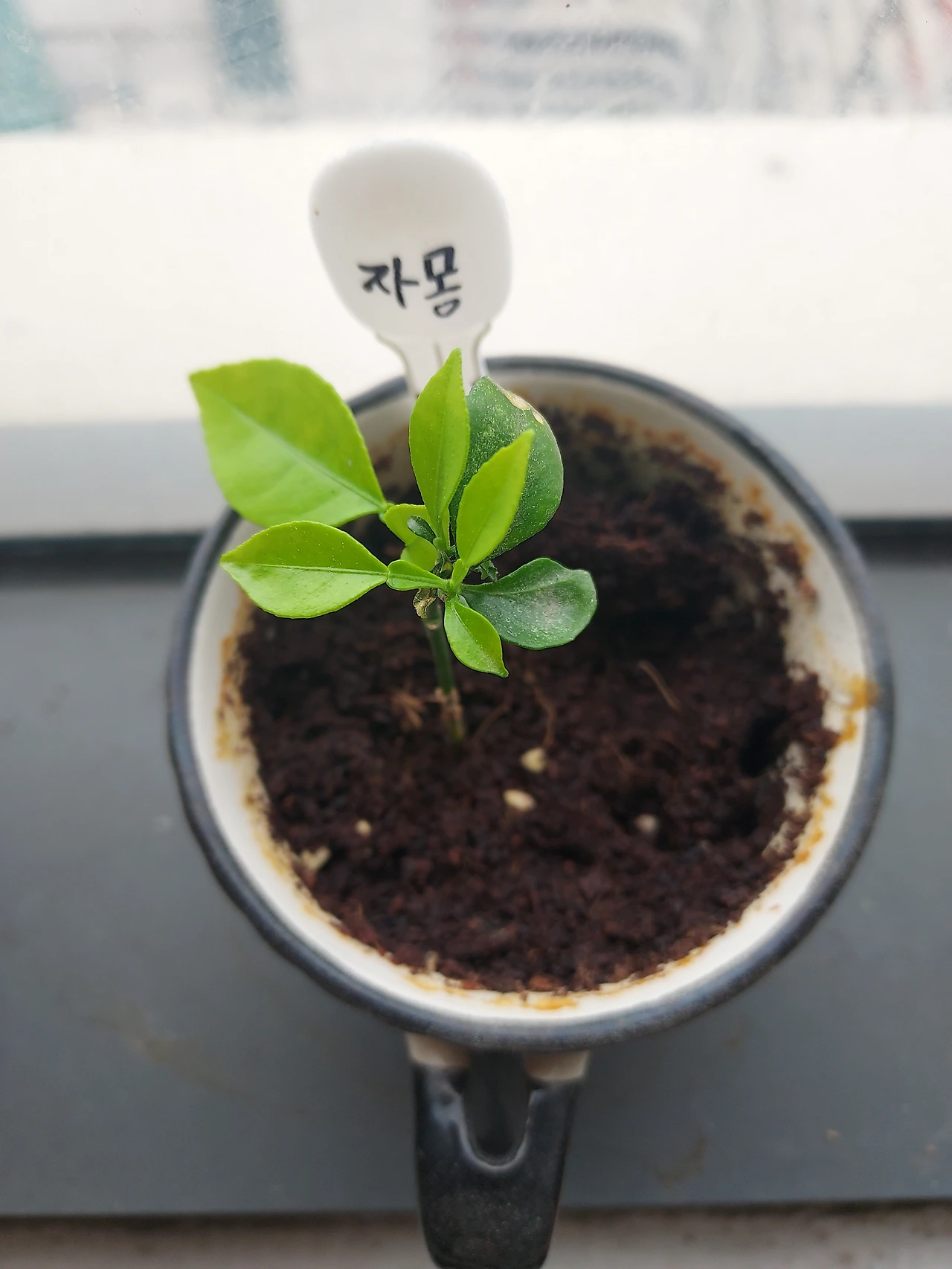 페트병을 잘라 귤씨를 심었는데... 이렇게 싹이 났다.