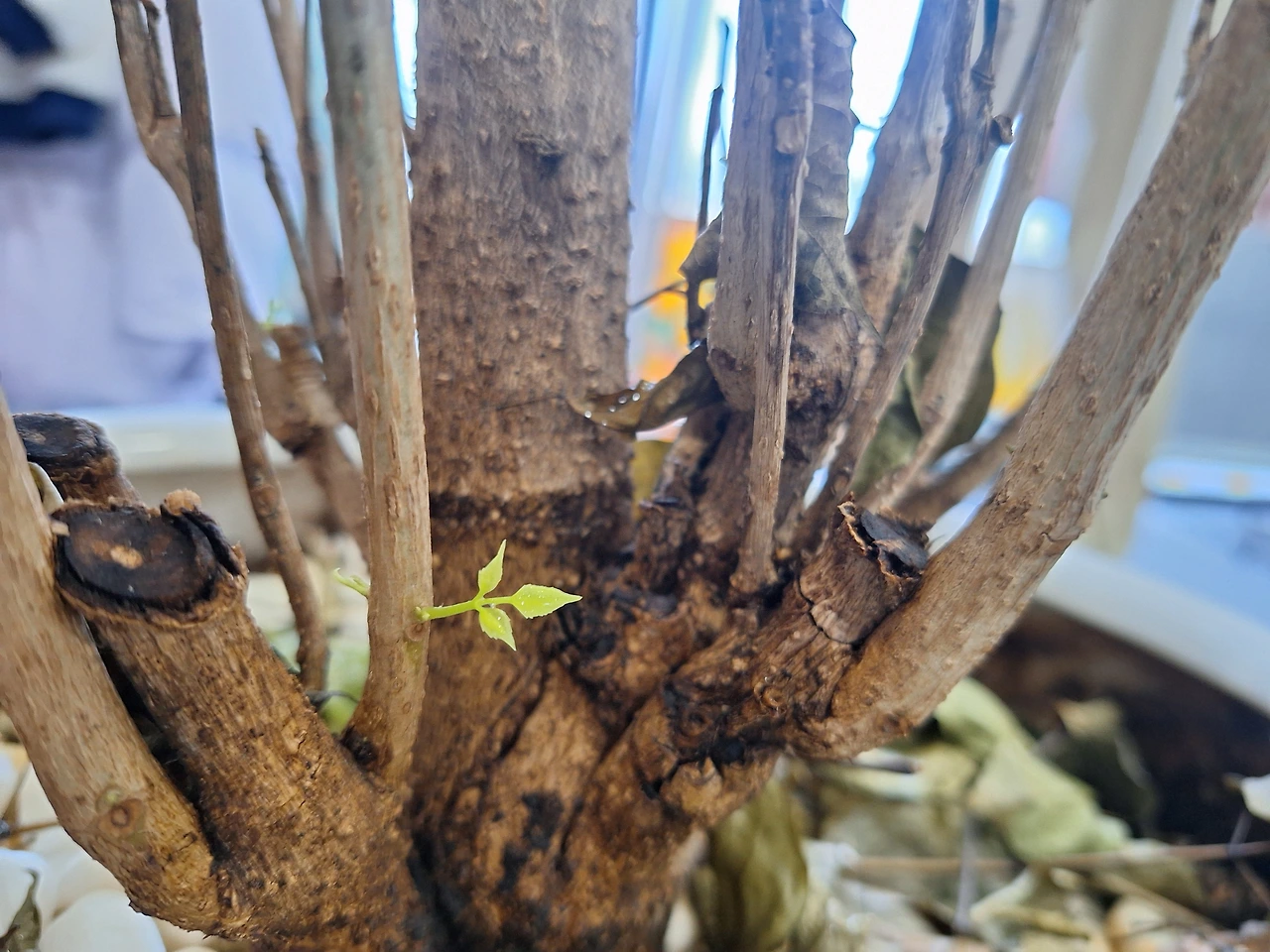 떨어지고 가지마저 바싹 말라 끝이 까맣게
