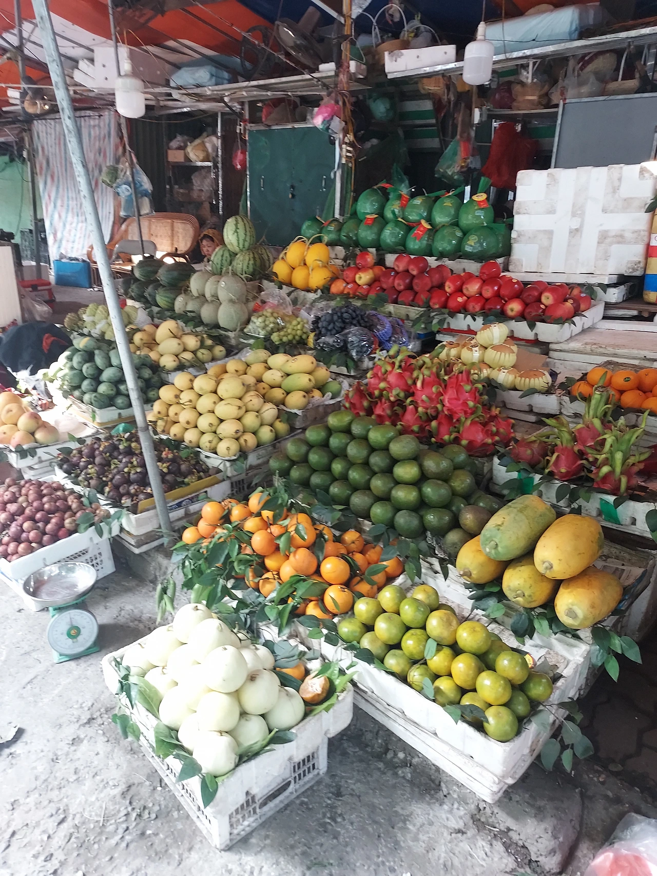 과일을 정확하게 그람수를 재어 판다. 500그람, 1키로, 2키로... 베트남에 온지 얼마 안되었을때 큰돈과 잔돈을 몰라서 돈을 부채처럼 펼쳐서 가져가라고 했던 기억이 난다.