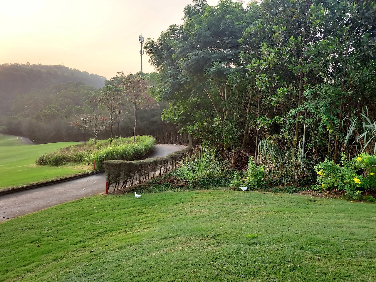 새들이 먼저 와서 풀밭에서 데이트를 즐긴다.