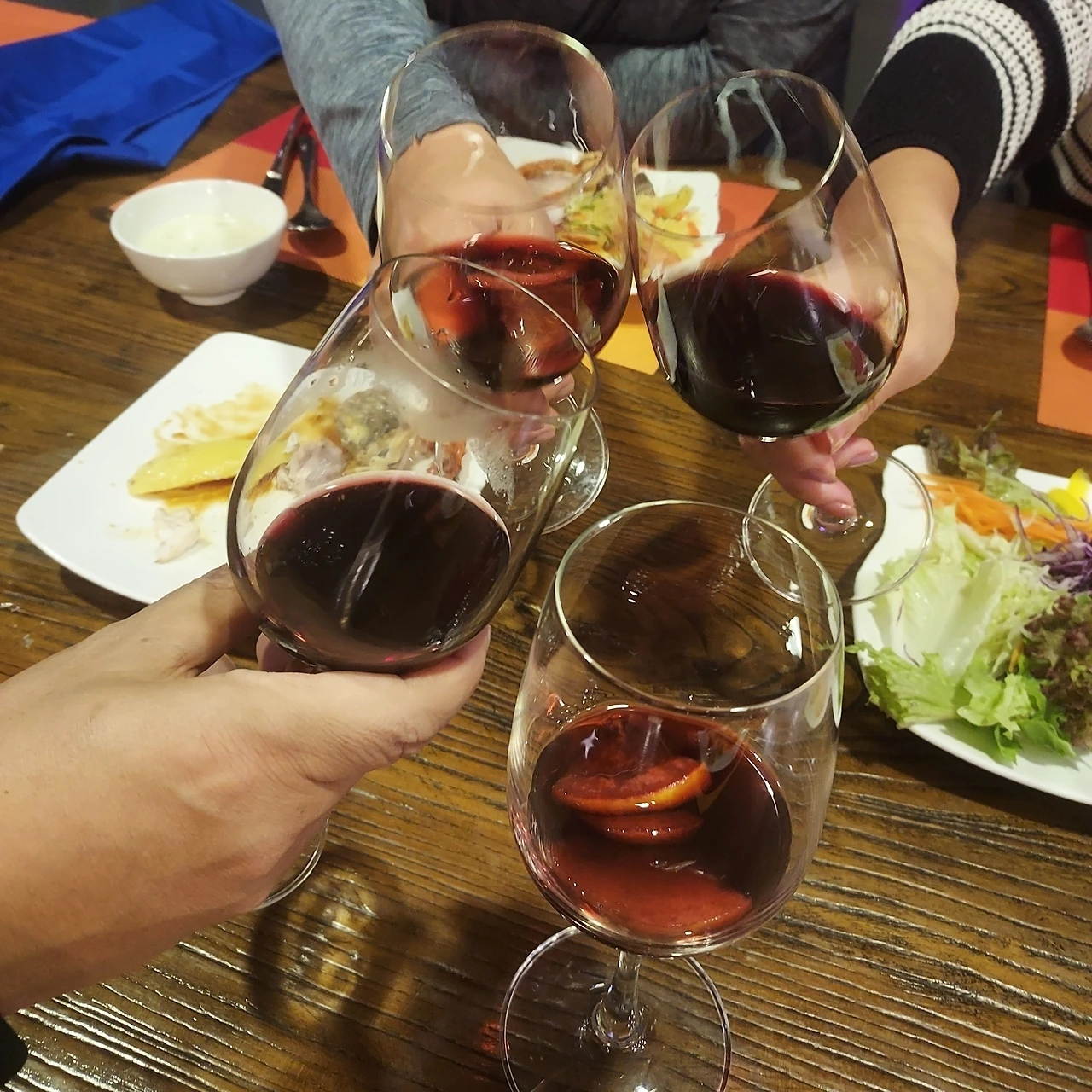 와인잔을 부딪치며