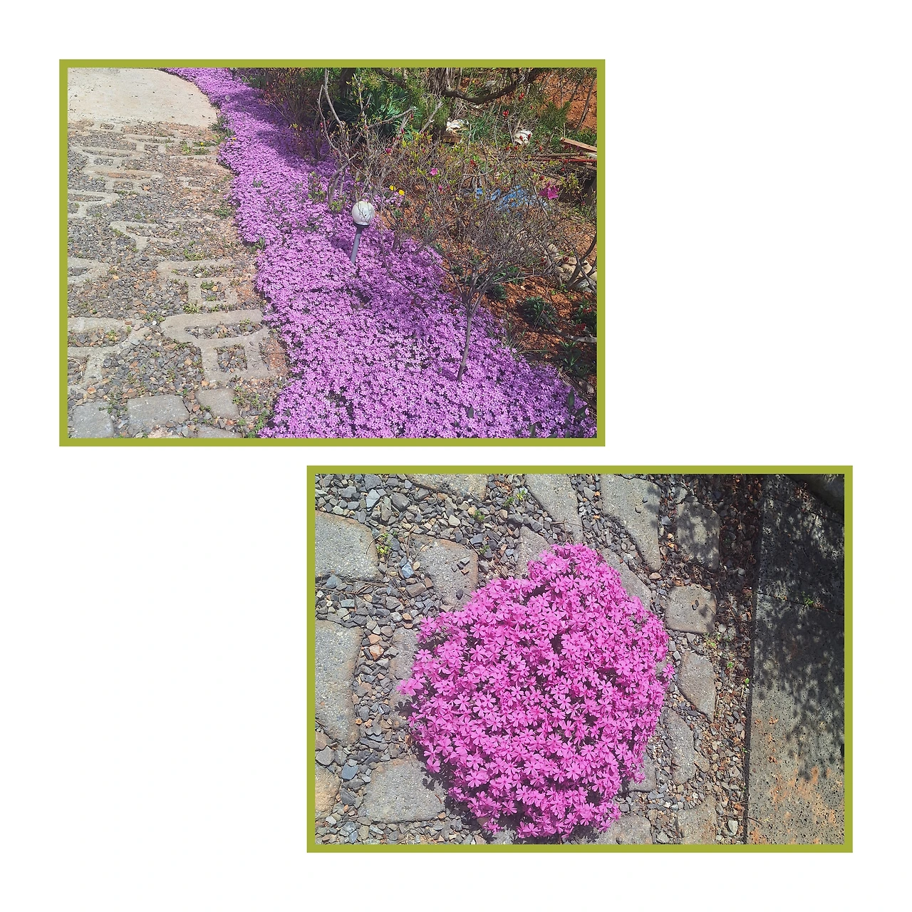 분홍색 꽃잔디가 앞마당에 가득하다.