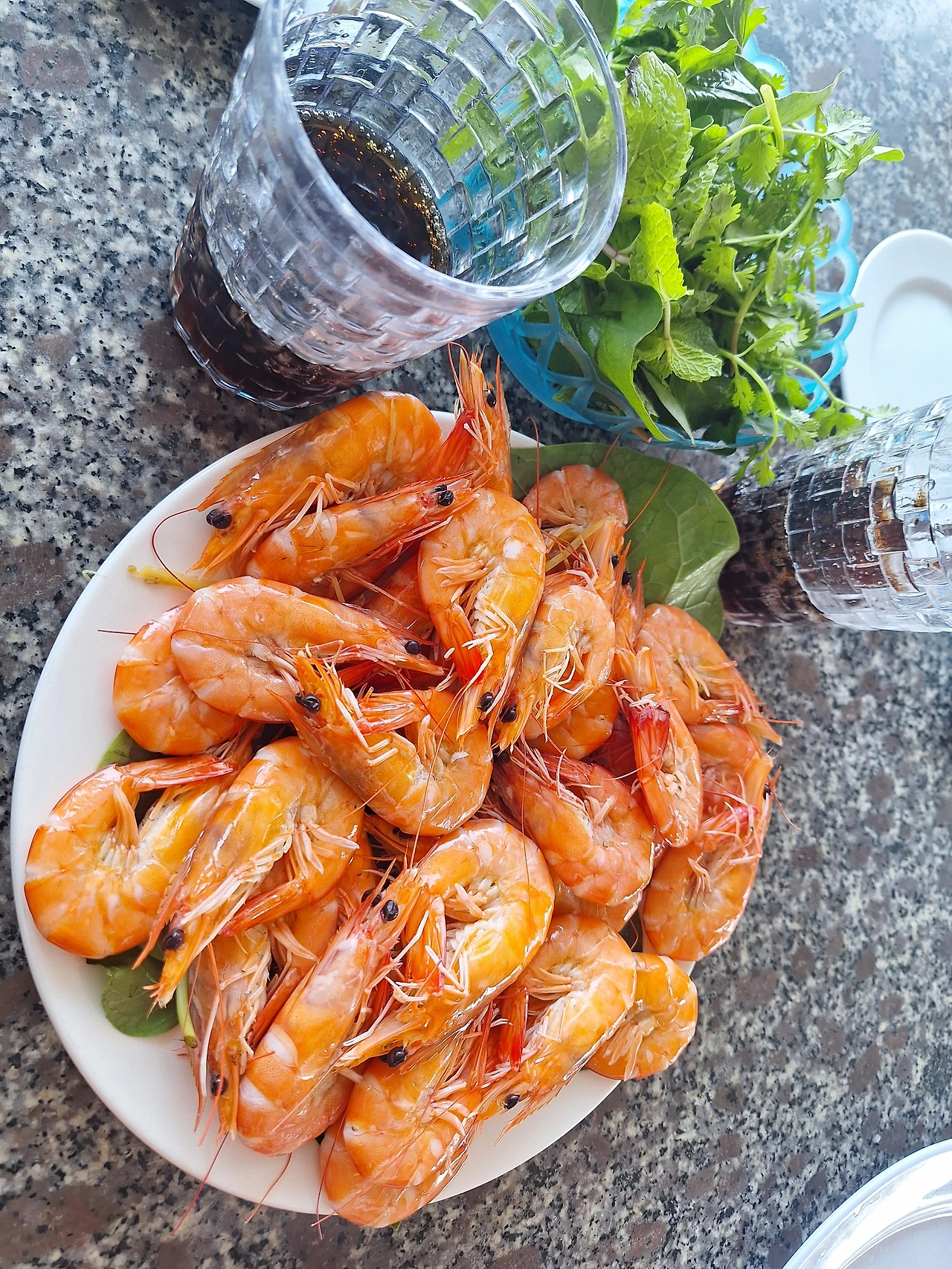 펄펄 뛰던 새우는 수족관에서 나와 찜이 되었다.