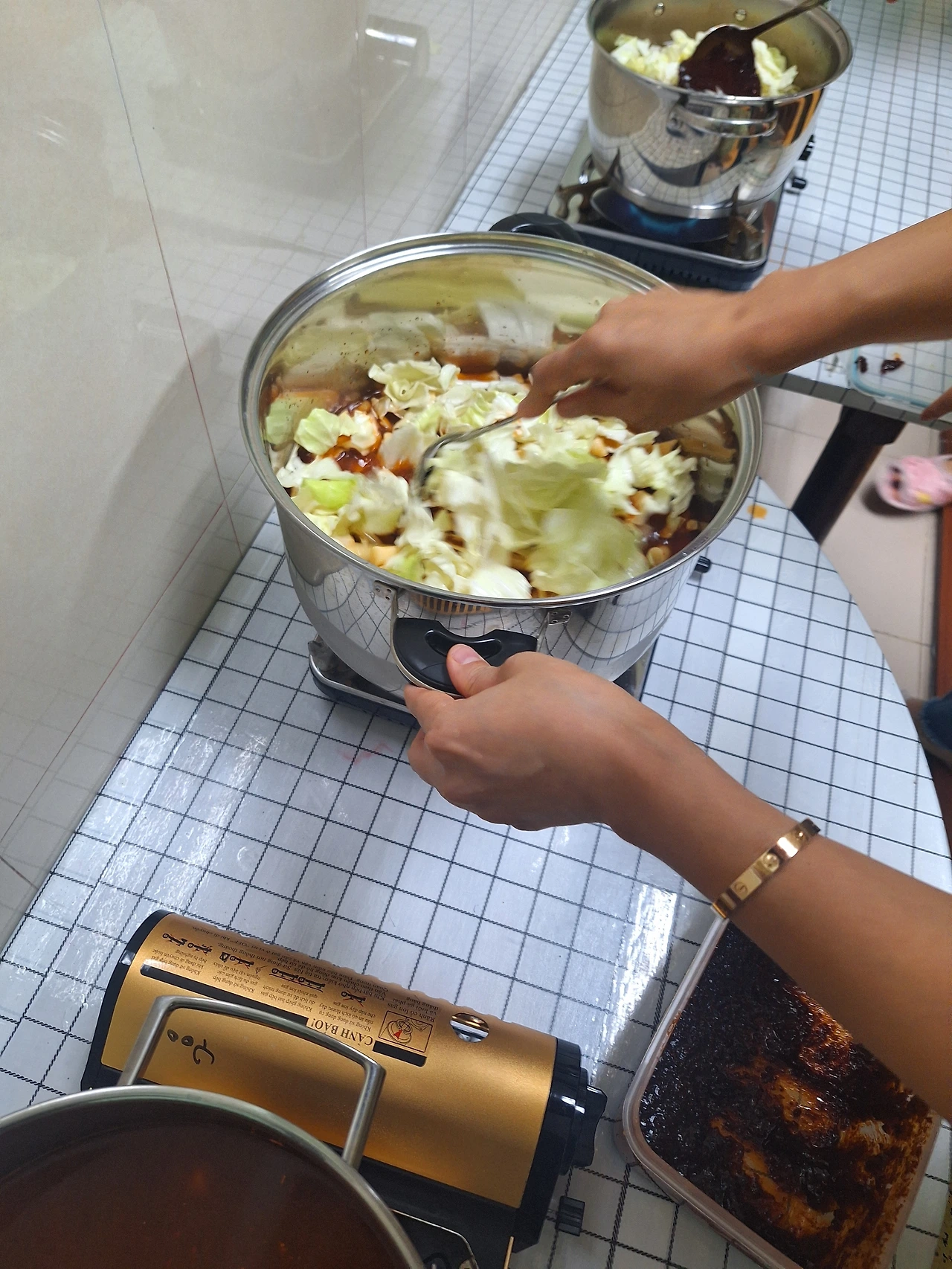 뒤태미인들은 줄 서서 떡볶이를 만든다.