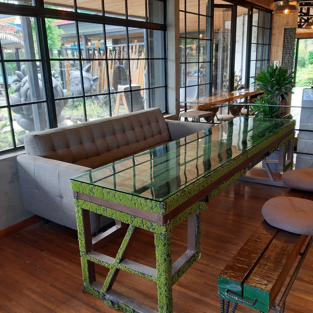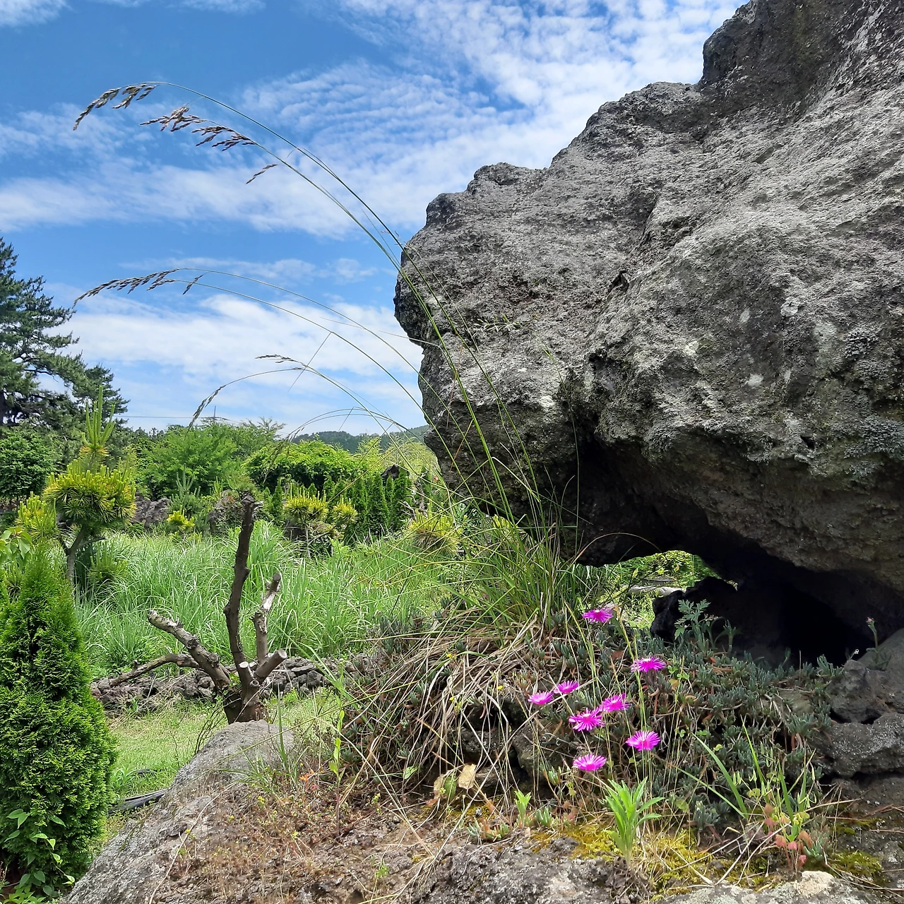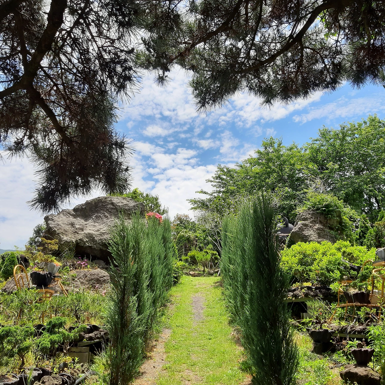 도깨비들을 형상화한 작품들 사이로 토굴을 만들어 차도 마시고 시원스레 햇빛도 피하고 비도 피할 수 있게 꾸며놓았다. 연초록빛 자연의 아름다움과 하늘의 조화가 감탄사를 뿜 뿜 뿜어내게 했다. 아마도 베트남에서 살다 보니 무디어진 감각 탓일 수도 있지만 너무 멋진 한국이다.
