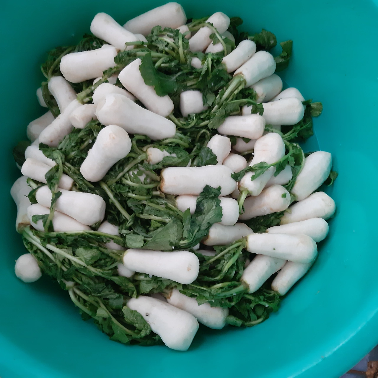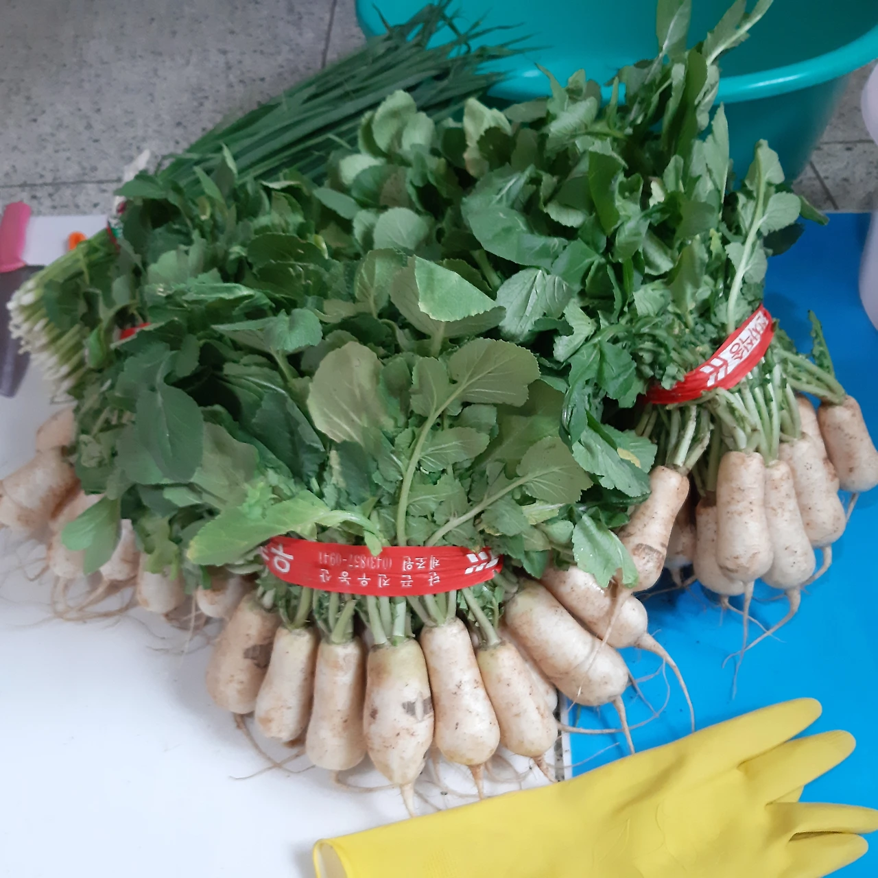 어느 만큼 가니 도매 야채가게 앞에 싱싱한 알타리가 한 단 3500원이 적혀 있다. 꼼꼼하게 체크하신 후 2단쯤을 골라 놓으시더니.. "조금 더 사고 싶네" 하시며 3단을 더 고르셨다. 무거울 텐데... 오이도 싱싱하다며 10개를 골랐고, 알배추도 3통이나 그 후로도 쪽파와 부츠를 역시나 큰 며느리답게 통이 크다. 그런데... 아뿔싸 배달이 안된다고 한다. 낑낑 들어 택시를 타고 아파트 앞까지 와서 내렸다.