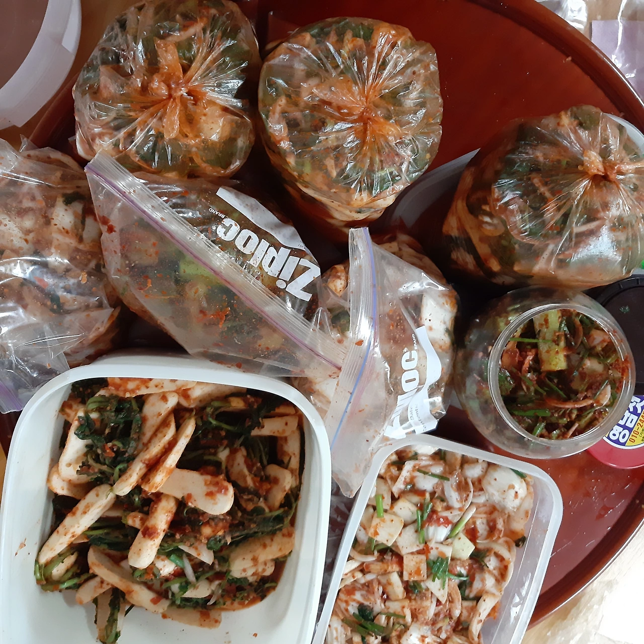 요즘, 마트나 홈쇼핑으로 쉽게 배달되는 김치를 사 먹어도 되는데... 굳이 엄마 김치를 갑자기 먹고 싶다는 딸을 위해 엄마는 땀을 흘리셨다. 도란도란 이야기꽃을 피우며 커다란 다라에서 김치는 완성되었다. 나도 오래간만에 김치를 담갔더니 피로가 왔지만 뿌듯했다. 김치 부자가 된듯한 알타리와 배추 그리고 오이김치 세 가지를 비닐백에 넣었다.