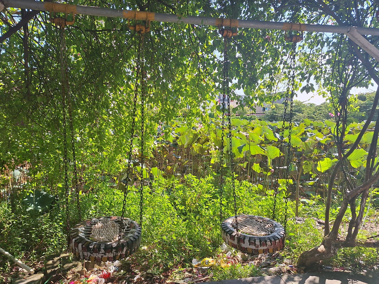 공장앞 타이어 그네