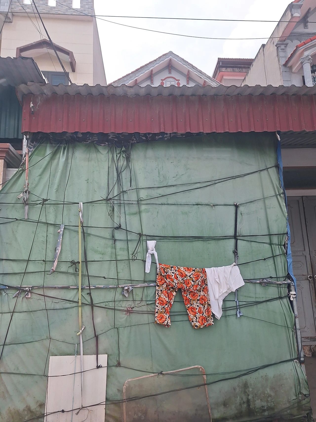 허름한 집 한편에 줄을 매달고 누군가 빨아서