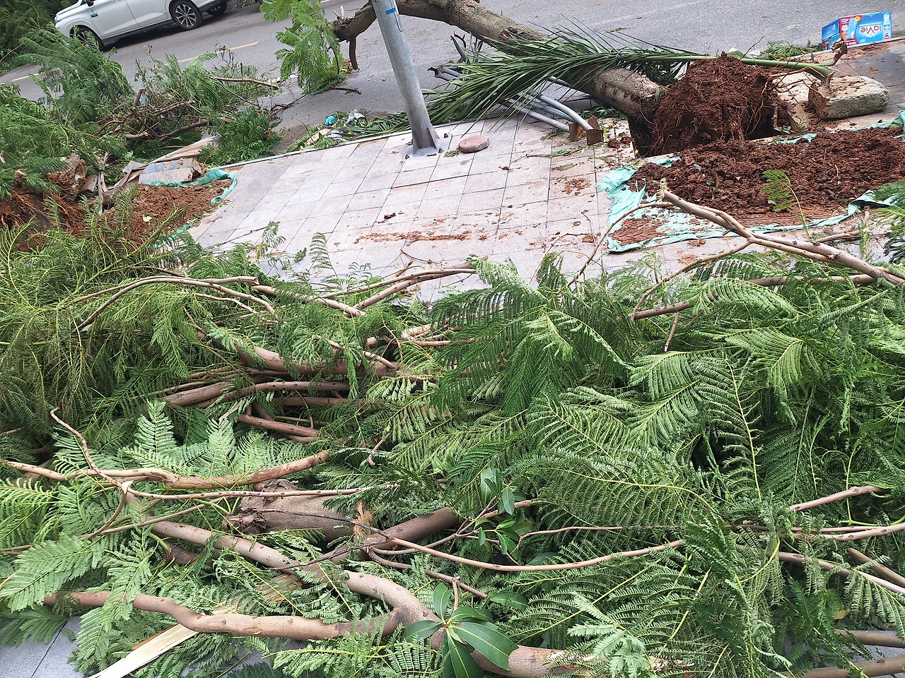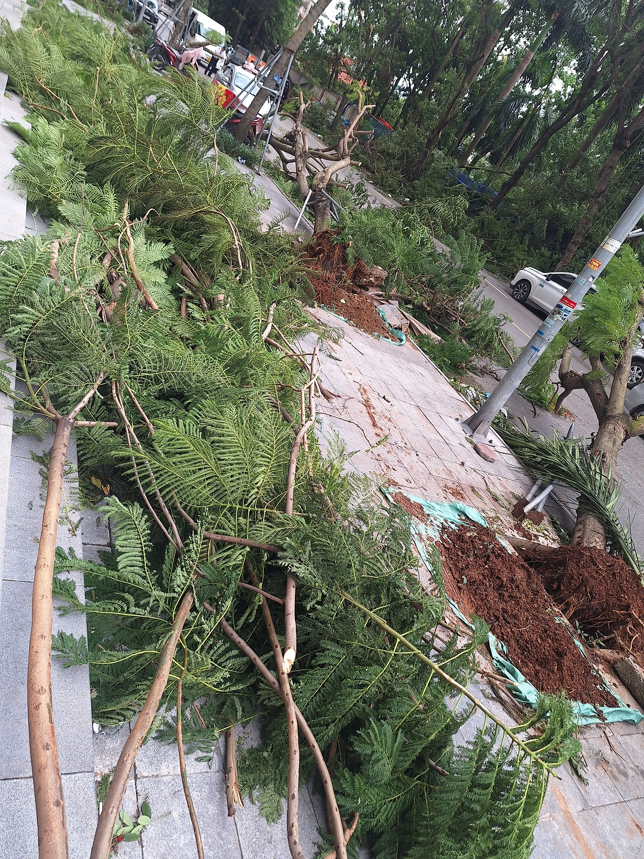 나무들이 밤사이 태풍과 싸웠다는 사실