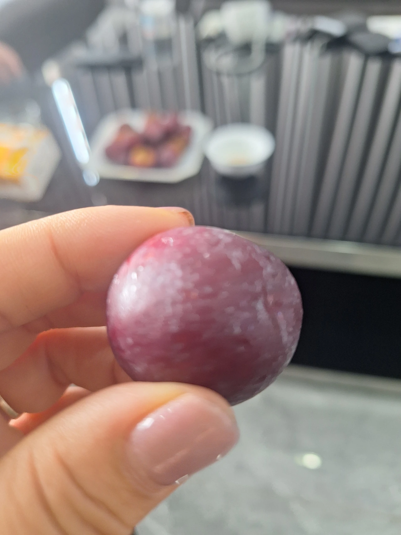 손님접대로 자두 한 접시에 소금을 내줍니다.
